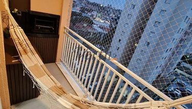 A varanda é gourmet com bancada de apoio e nicho para cervejeira, localizado em andar alto, conta com ótima vista e sol da manhã. Chuveiros aquecidos a gas com sistema Lorenzetti moderno e recentemente trocado, sistema de som ambiente com caixas na sala, cozinha e varanda e ar condicionado multi split com uma condensadora e 3 evaporadas (2 Dormitórios e Sala), somente o sistema de ar condicionado instalado tem um valor aproximado de 16 mil reais,