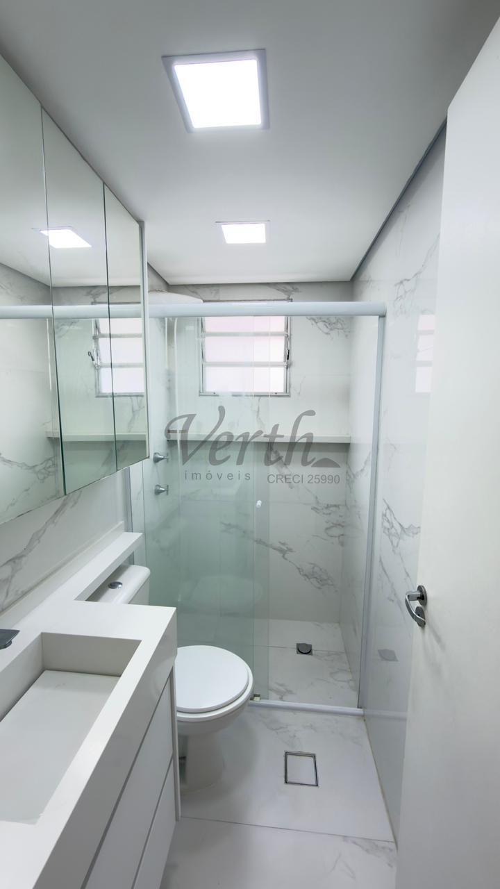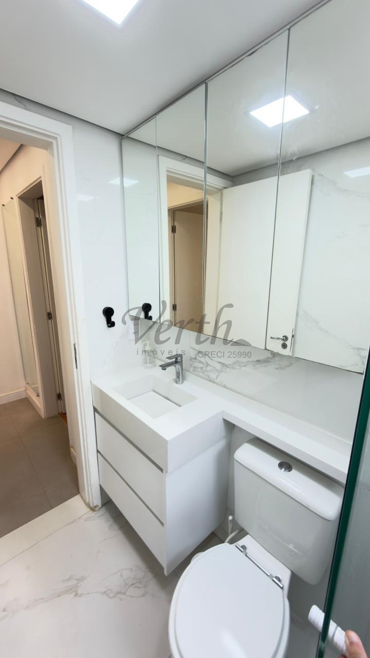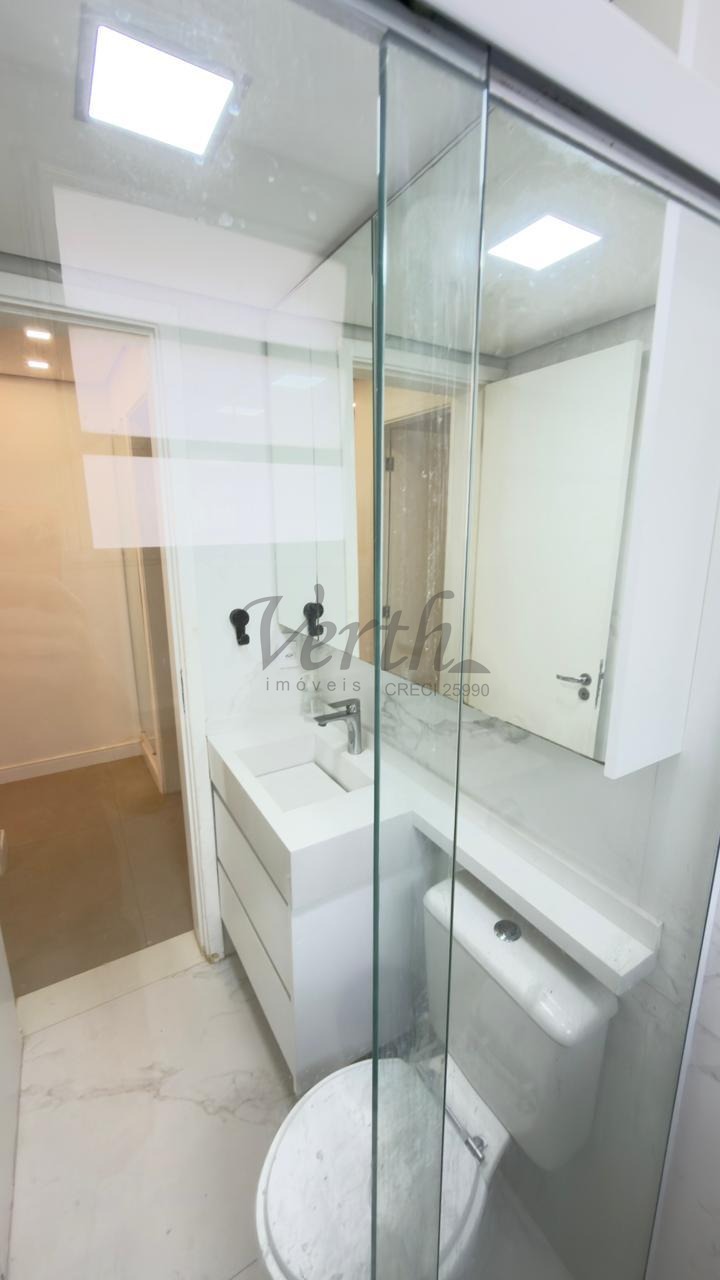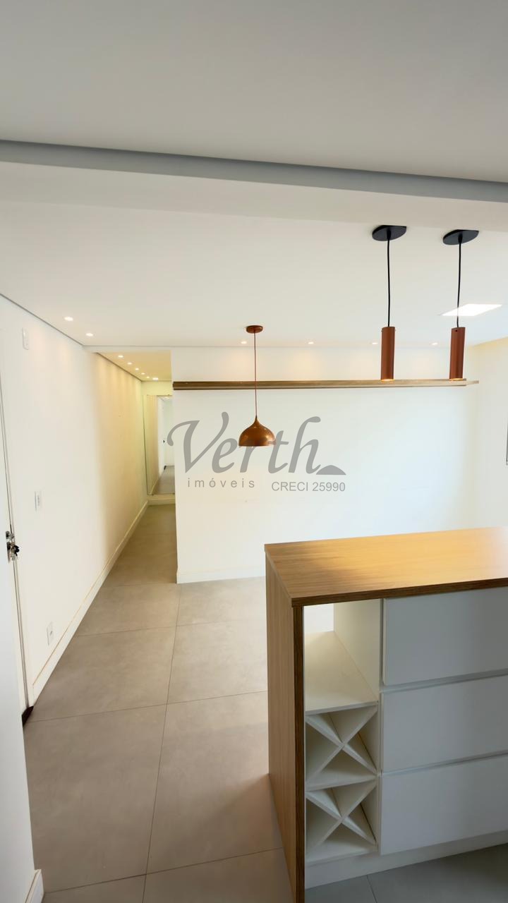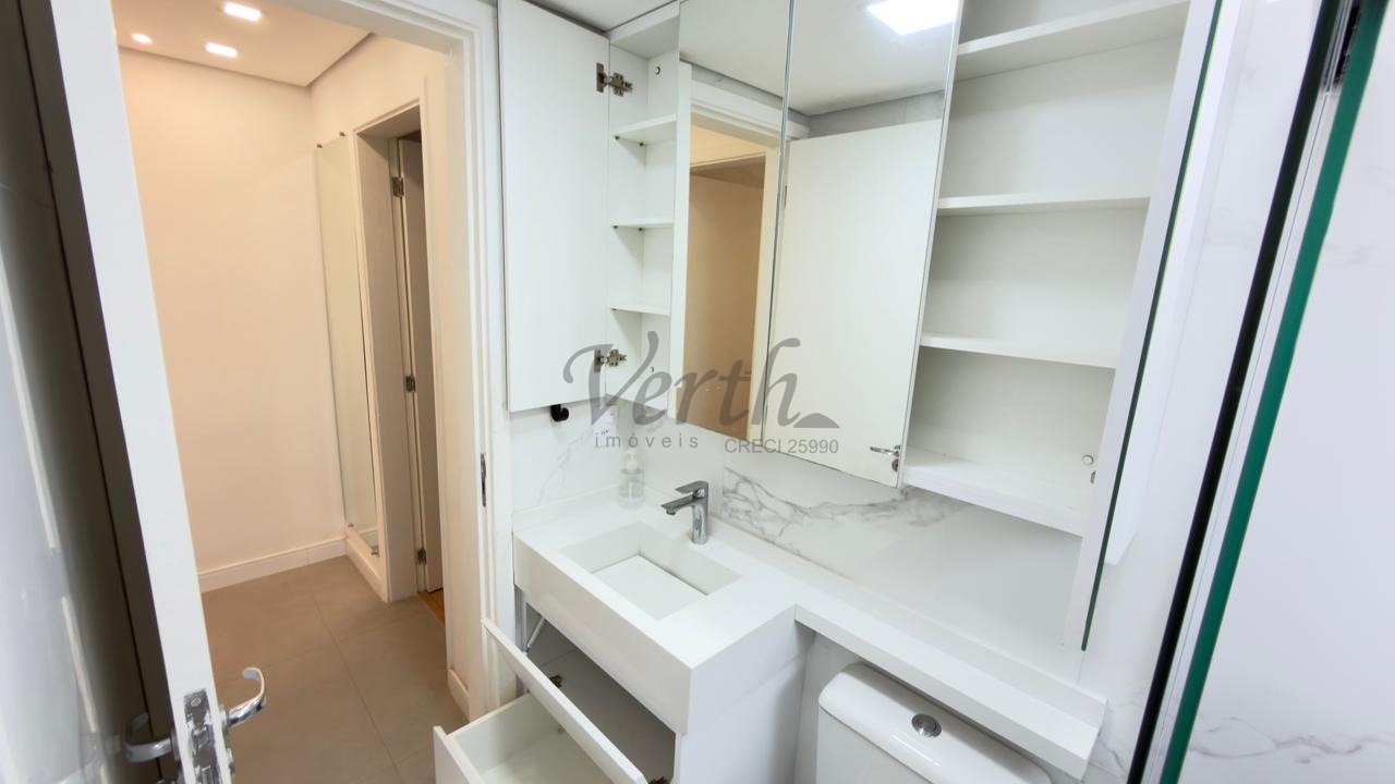 O apartamento conta com cozinha americana equipada com eletrodomésticos embutidos, lavanderia separada, armários planejados em todos os ambientes e piso em porcelanato. Com acabamento moderno e pronto para morar, o imóvel está desocupado e aceita financiamento, oferecendo facilidade na negociação.