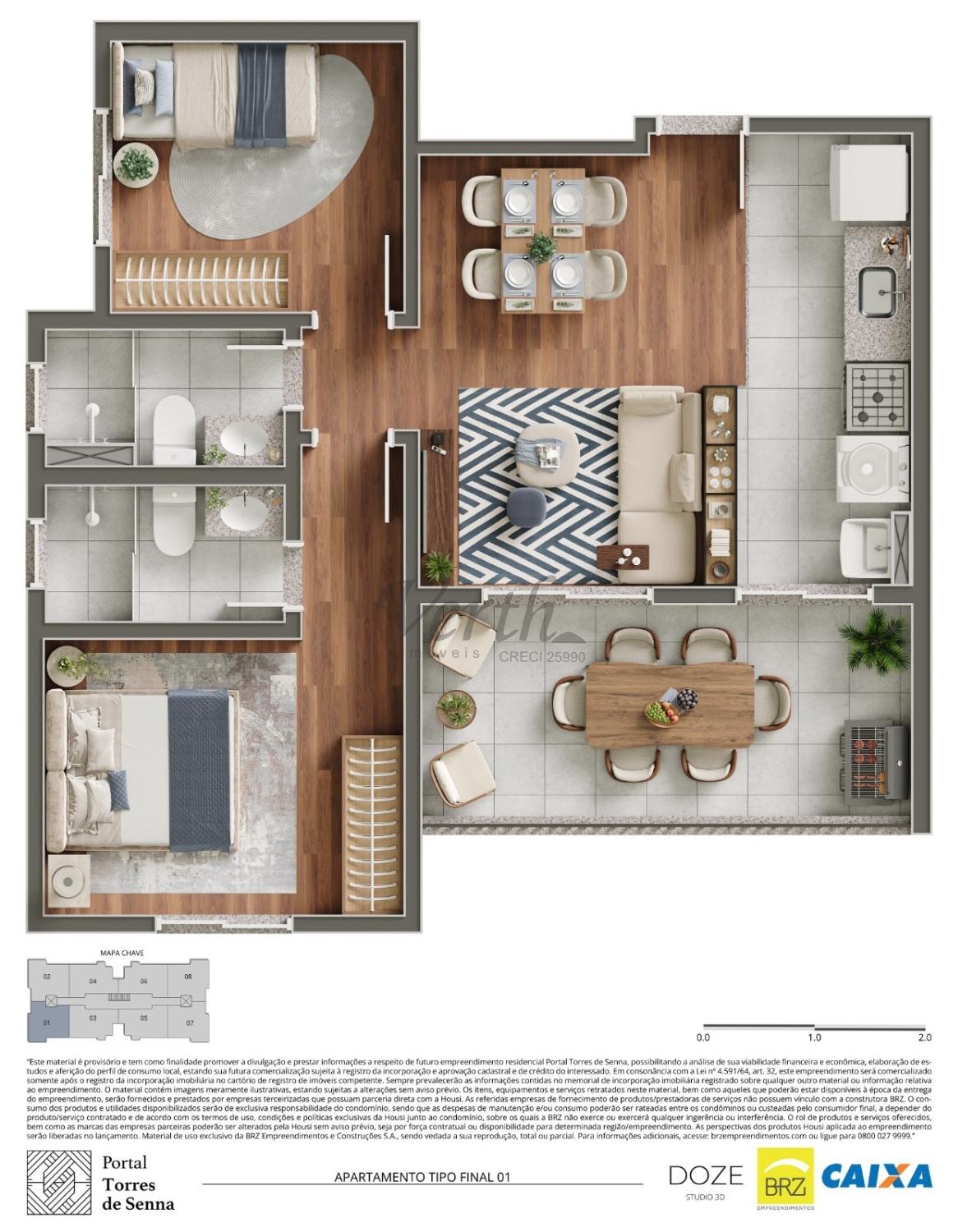 2 dormitórios, sendo 1 suíte,
