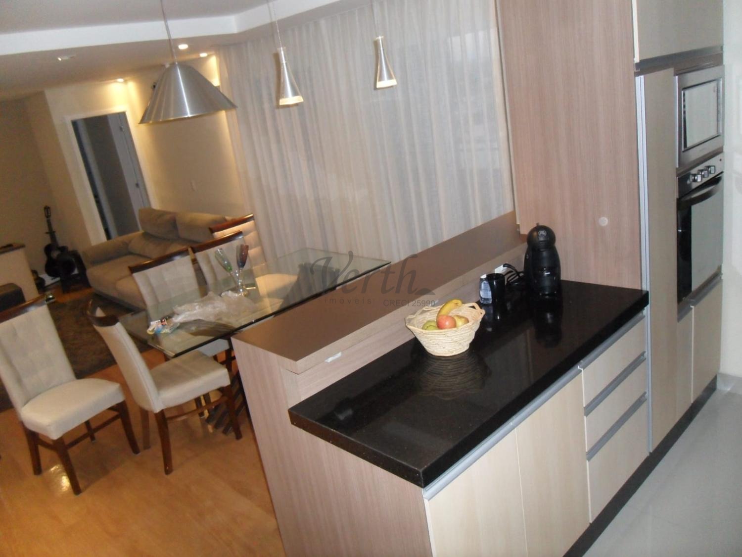 A sala é integrada à varanda gourmet, criando um ambiente acolhedor para receber amigos ou relaxar ao fim do dia. Há ainda a possibilidade de montar um escritório, aproveitando a luminosidade natural dos ambientes. Os dormitórios são bem ventilados e já possuem armários planejados, enquanto a cozinha oferece móveis sob medida e excelente aproveitamento de espaço.