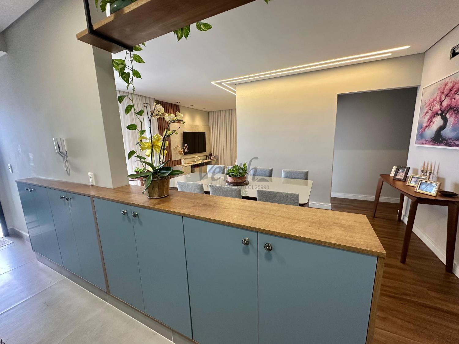 A área social se conecta a uma varanda ampla com churrasqueira, já envidraçada, criando um espaço versátil e agradável para convivência.