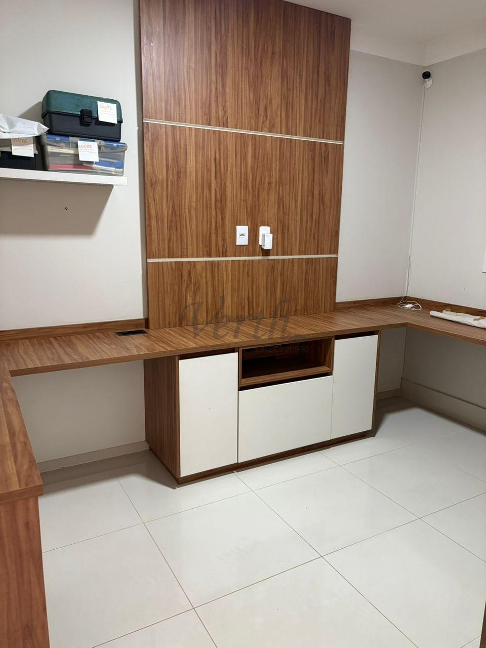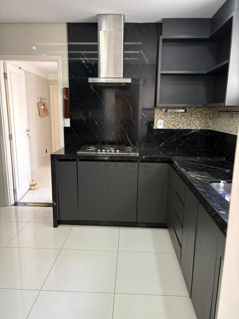 A cozinha é planejada, funcional e equipada com eletrodomésticos em inox, integrada à sala de almoço. Conta ainda com uma lavanderia espaçosa e um quarto de apoio versátil, ideal para escritório ou sala de estudos.