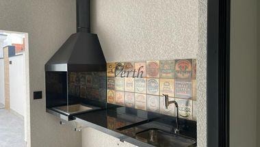 - churrasqueira em vidro e inox.