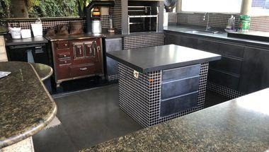 Gourmet na piscina: com churrasqueira, fogão a gás, cooktop,