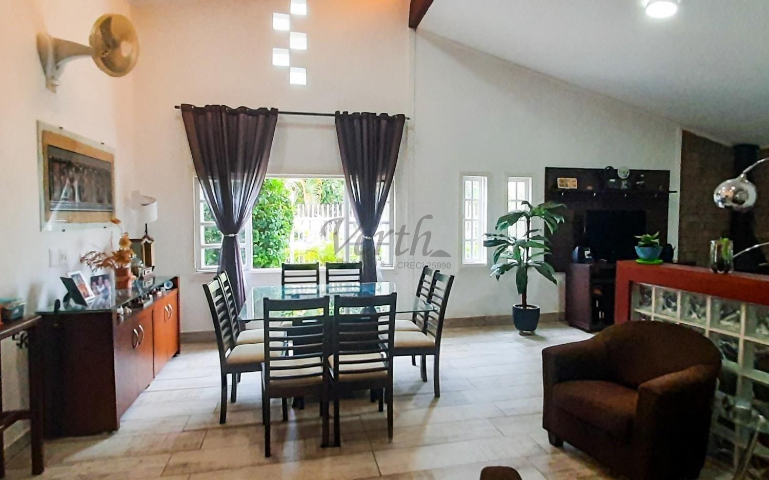A área de convivência interna é aconchegante e funcional. A sala de TV possui lareira a lenha, ideal para os dias mais frios, e o estúdio de 46 m² conta com uma charmosa lareira a etanol. A cozinha ampla com ilha é um destaque para quem ama cozinhar, sendo integrada ao espaço gourmet, que está equipado com duas pias, fogão industrial e churrasqueira, perfeito para receber e celebrar momentos especiais.