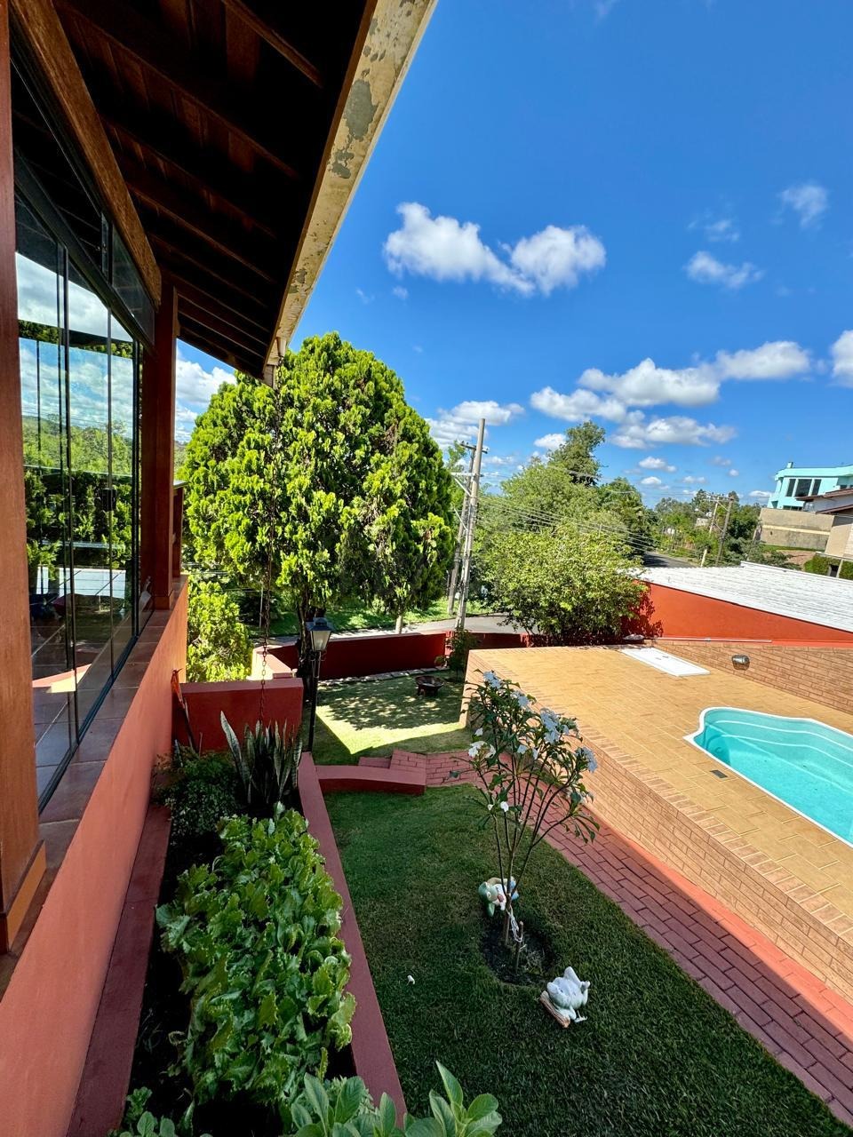 - Piscina: De fibra com aquecimento solar (verde), para momentos de lazer e relaxamento.