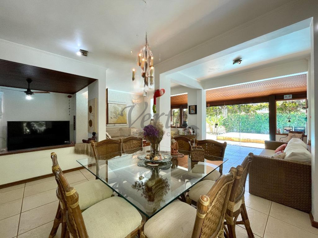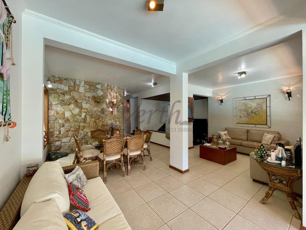 O projeto foi pensado para unir conforto e convivência. No térreo, a casa conta com sala de TV, duas salas de estar integradas à varanda envidraçada, além de uma área gourmet com piscina e jardim, perfeitos para receber amigos e familiares. A cozinha é funcional e bem distribuída, com lavanderia, dormitório e banheiro de serviço. O piso ainda dispõe de uma suíte, oferecendo mais praticidade e acessibilidade.