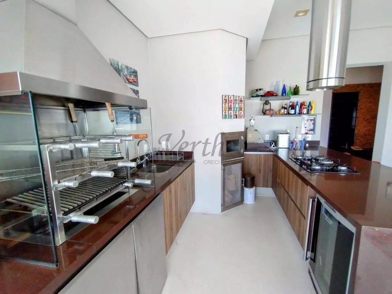 A cozinha moderna e funcional é equipada para atender às mais diversas necessidades do dia a dia. No piso superior, estão 3 suítes bem distribuídas, incluindo a suíte master com closet, garantindo privacidade e conforto. No pavimento inferior, além de uma quarta suíte, encontram-se uma segunda sala de TV e um espaço gourmet completo com churrasqueira e forno à lenha, perfeito para receber amigos e familiares.
