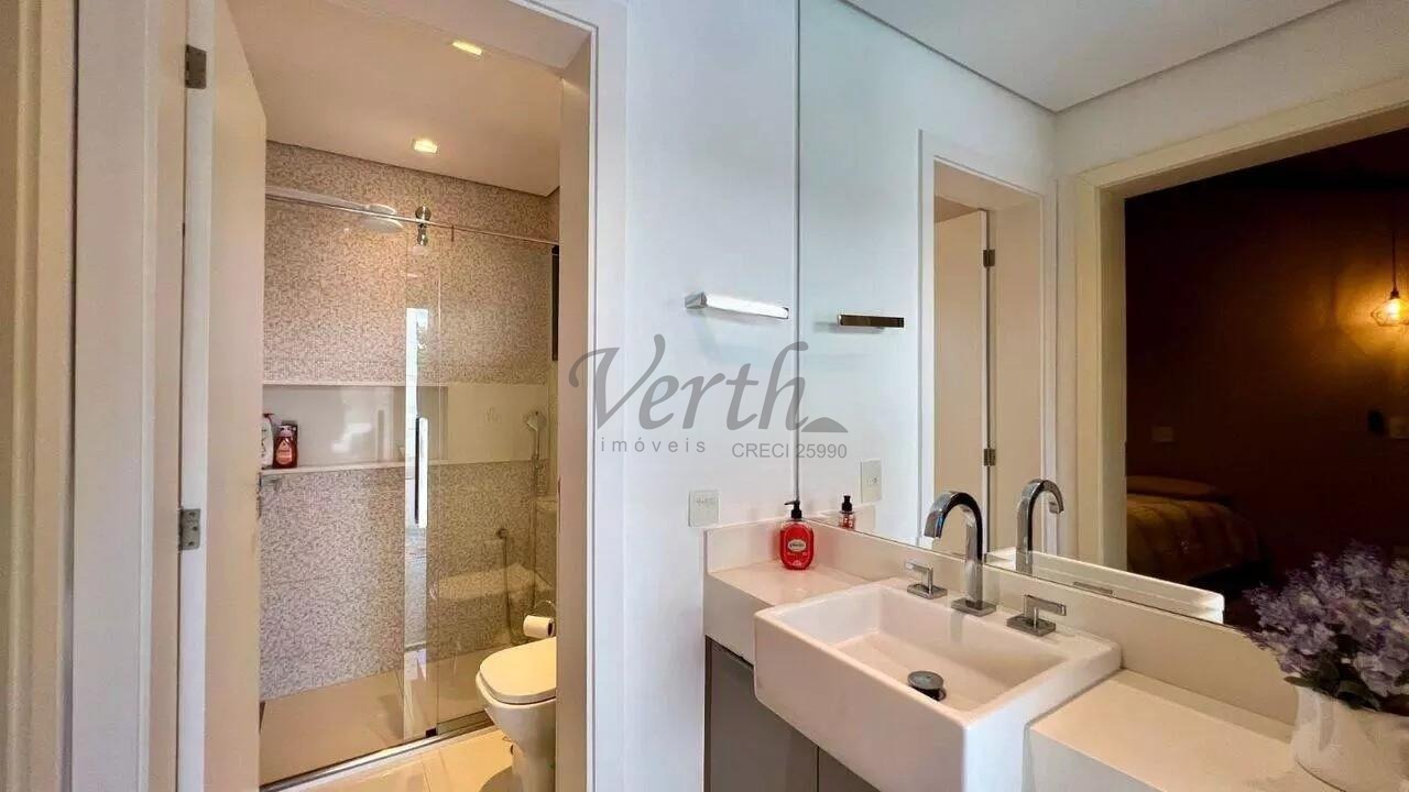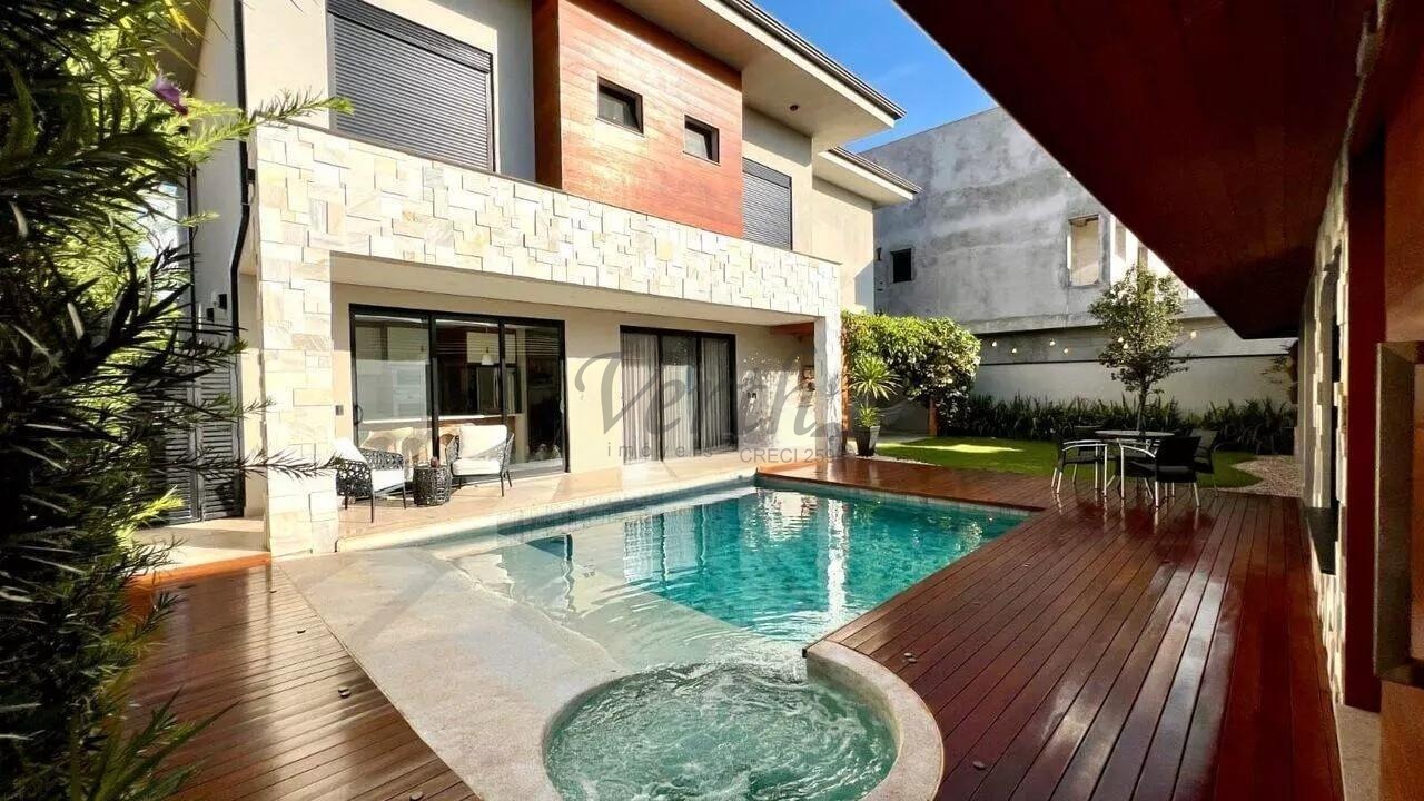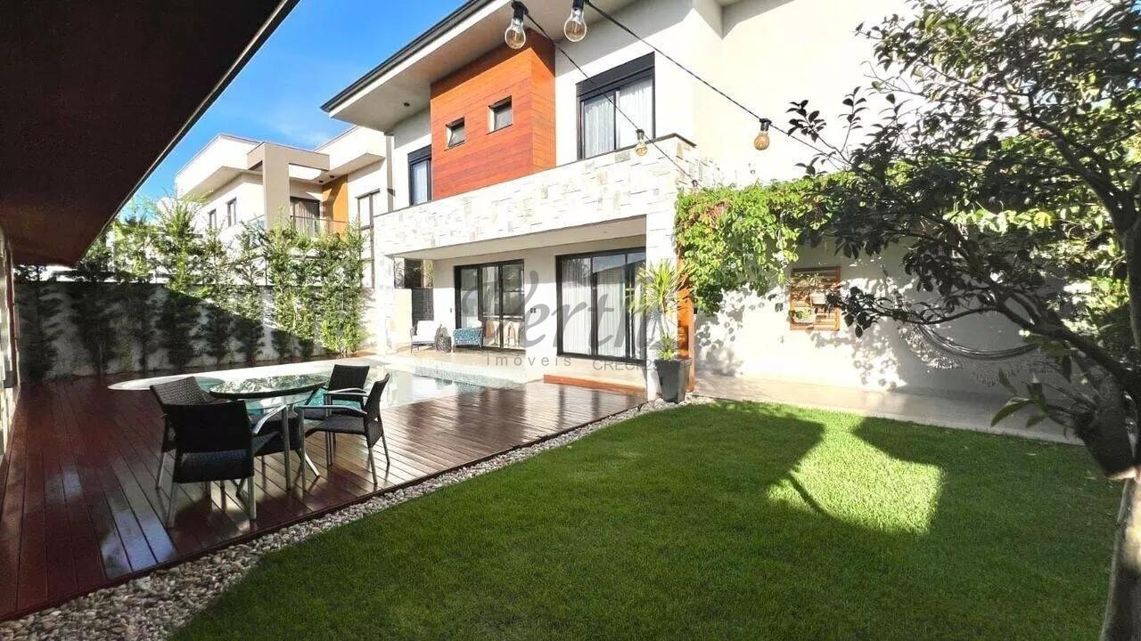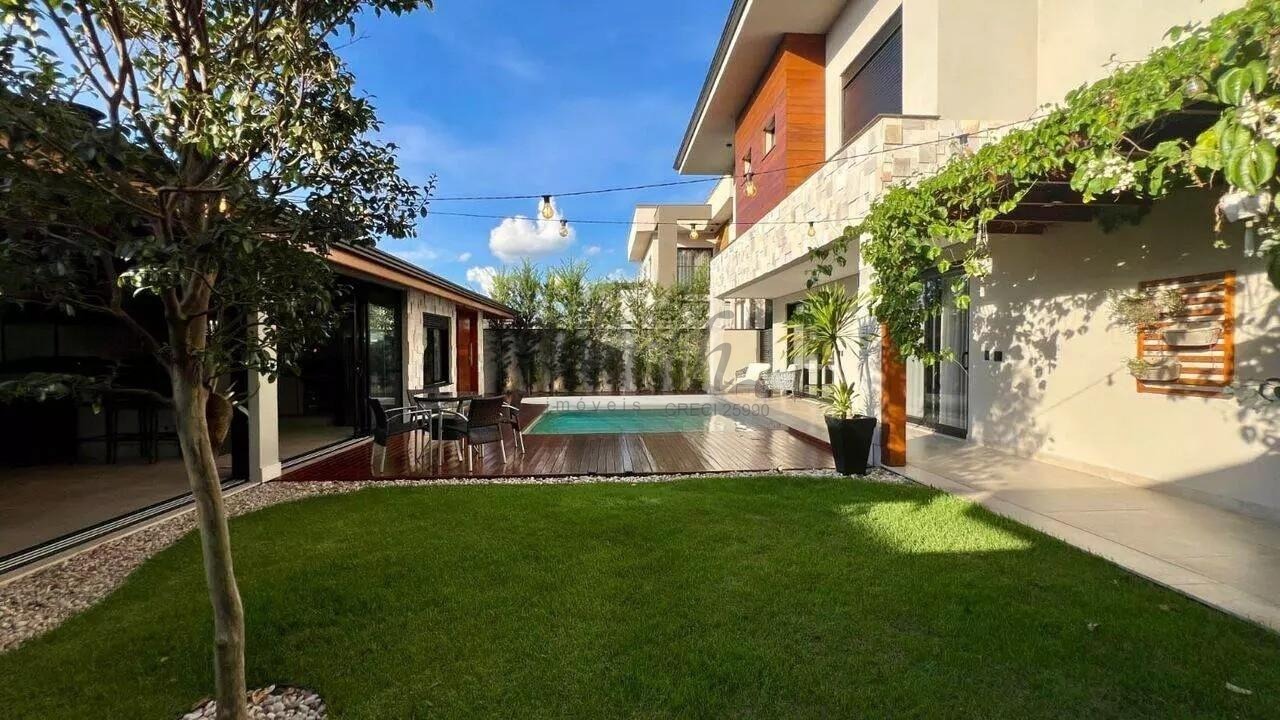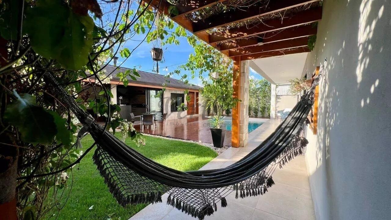 No piso inferior, o imóvel oferece salas de estar, jantar e TV integradas, cozinha com bancada em Silestone branco, lavabo com piso e lavatório em mármore travertino romano e hall de entrada. A área externa é composta por uma piscina aquecida com iluminação, área gourmet com 1 quarto de visitas e 1 banheiro, além de 1 canil e 1 depósito. O imóvel possui 1 cisterna, 1 painel fotovoltaico, e sistemas de aquecimento solar para a casa e para a piscina. A documentação está disponível para financiamento e estuda permuta por imóvel de menor valor.