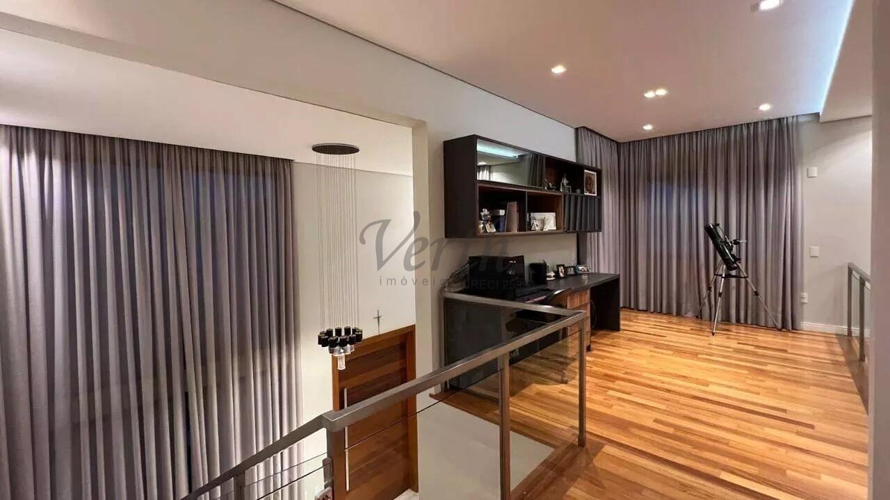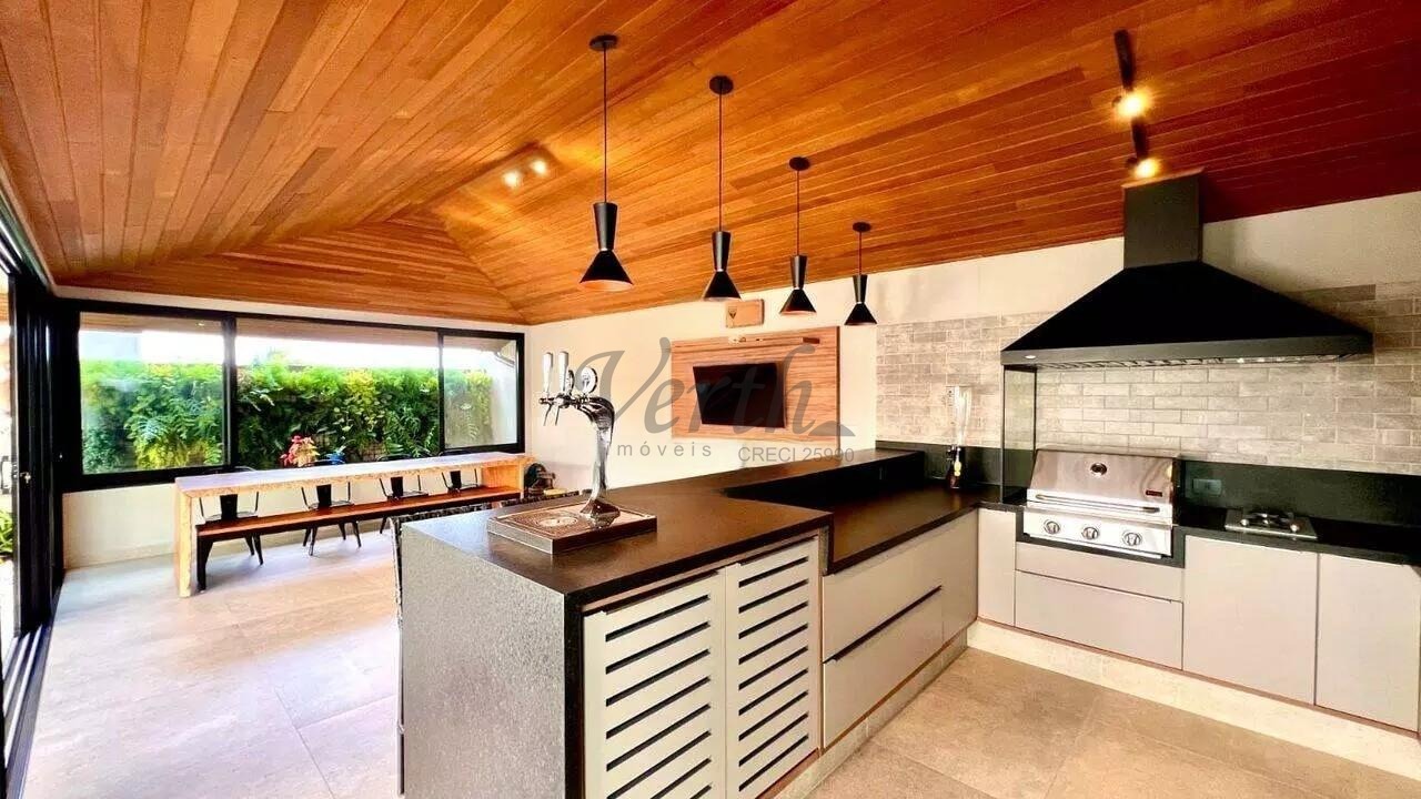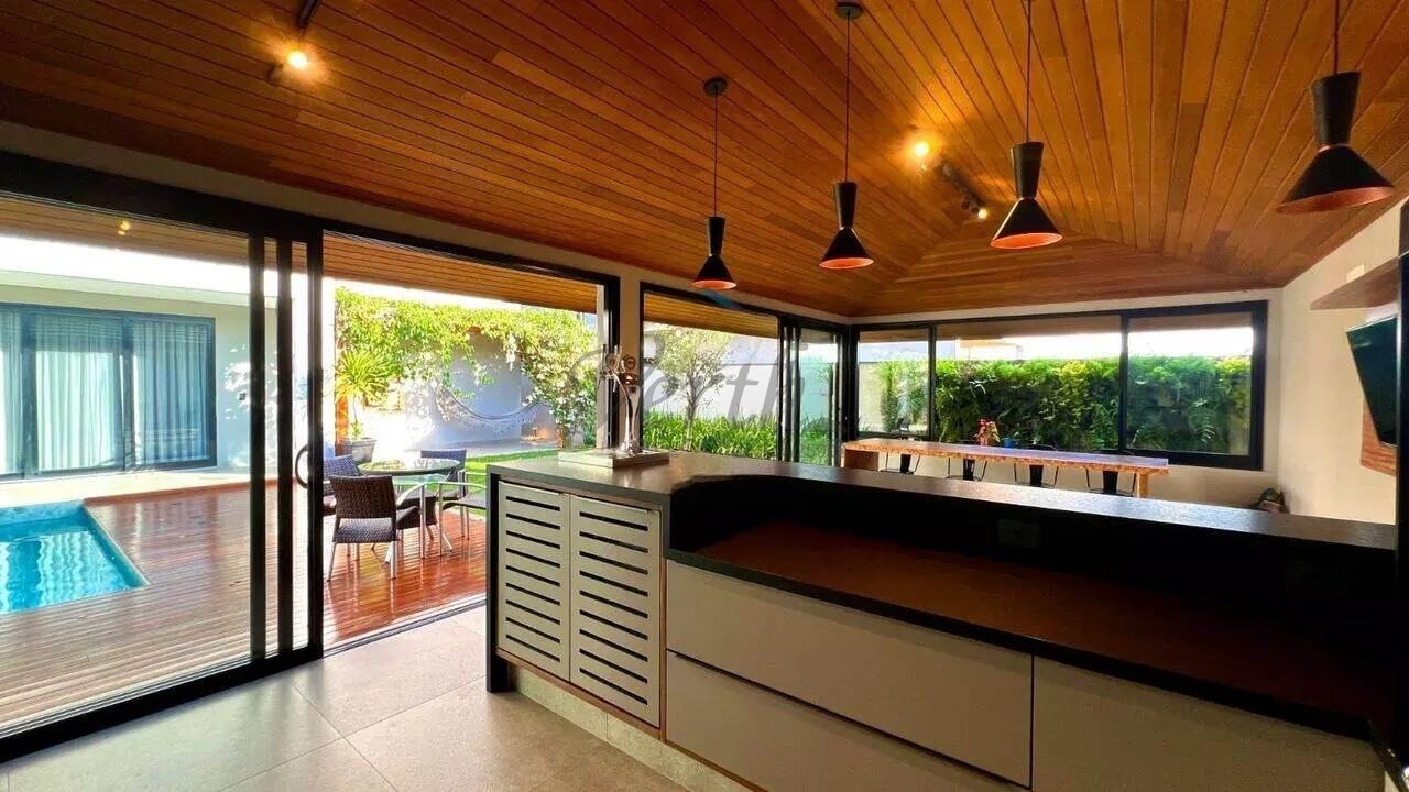 Localizada no Condomínio Tamboré Jaguariúna, esta residência possui 512 metros quadrados de terreno e 414 metros quadrados de área construída. A fachada e o deck são revestidos em madeira Cumaru.