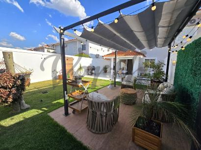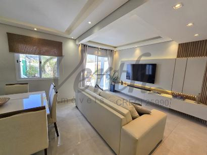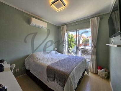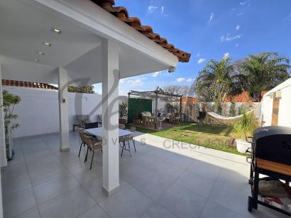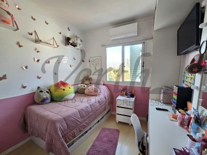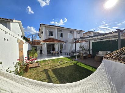 A casa conta com três dormitórios, sendo uma suíte, além de garagem para dois veículos. Os moradores desfrutam de completa infraestrutura de lazer, que inclui piscina, academia equipada, dois salões de festas e quadra esportiva. A segurança é garantida por portaria com controle de acesso e vigilância 24 horas.
