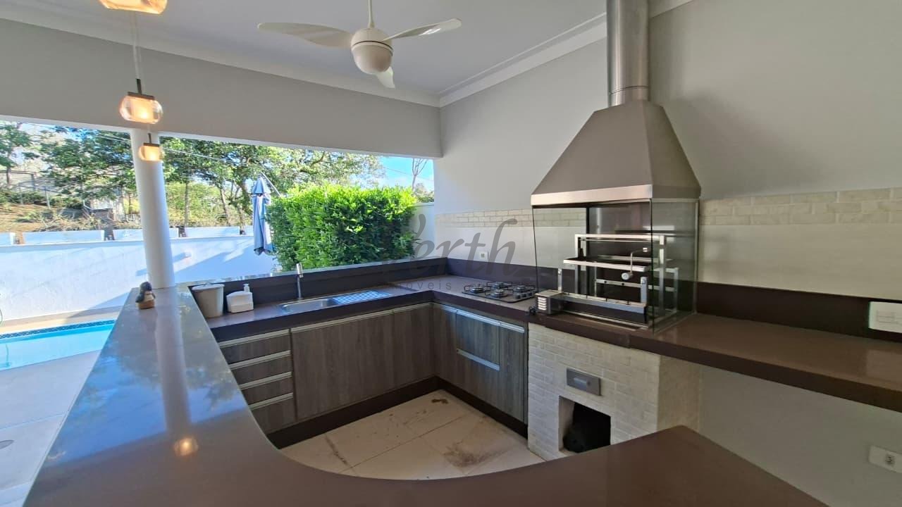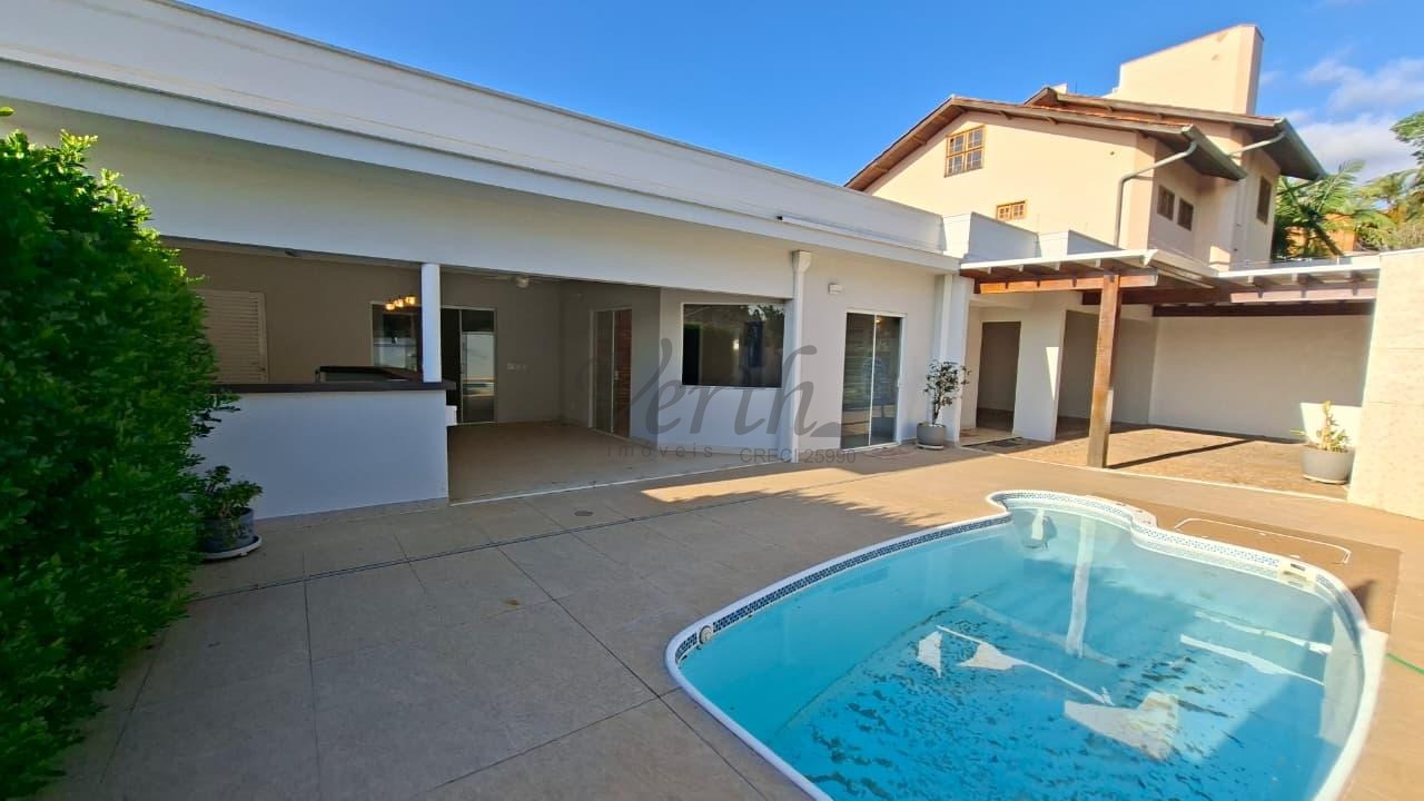 Casa térrea em condomínio fechado com 4 suítes, oferecendo total privacidade e conforto para 4 dormitórios e seus hóspedes. O imóvel tem 5 banheiros, garantindo a comodidade de todos os residentes. Nos fundos, a propriedade conta com mais 1 dormitório e 1 banheiro, ideal para uso como espaço de serviço ou de hóspedes.