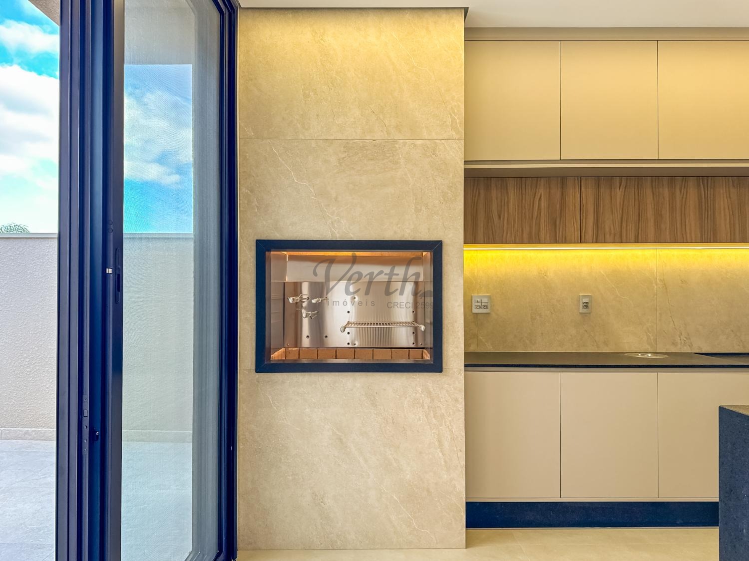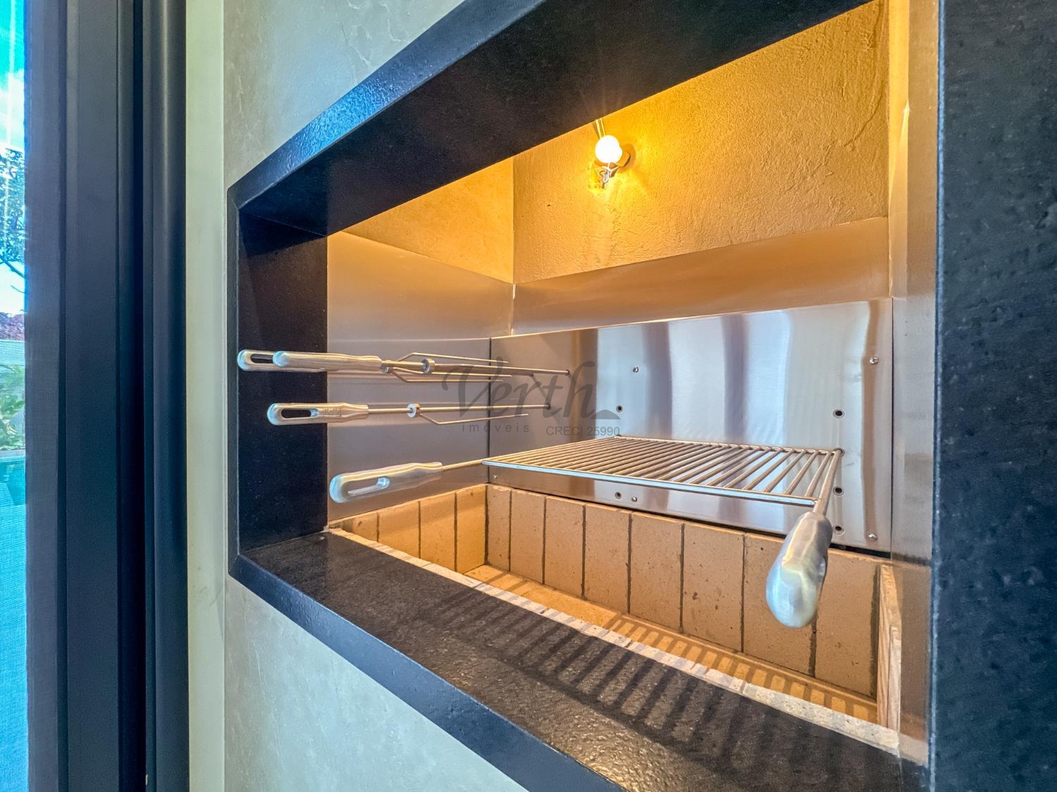 Espaço gourmet com churrasqueira interna em inox e motor para espetos