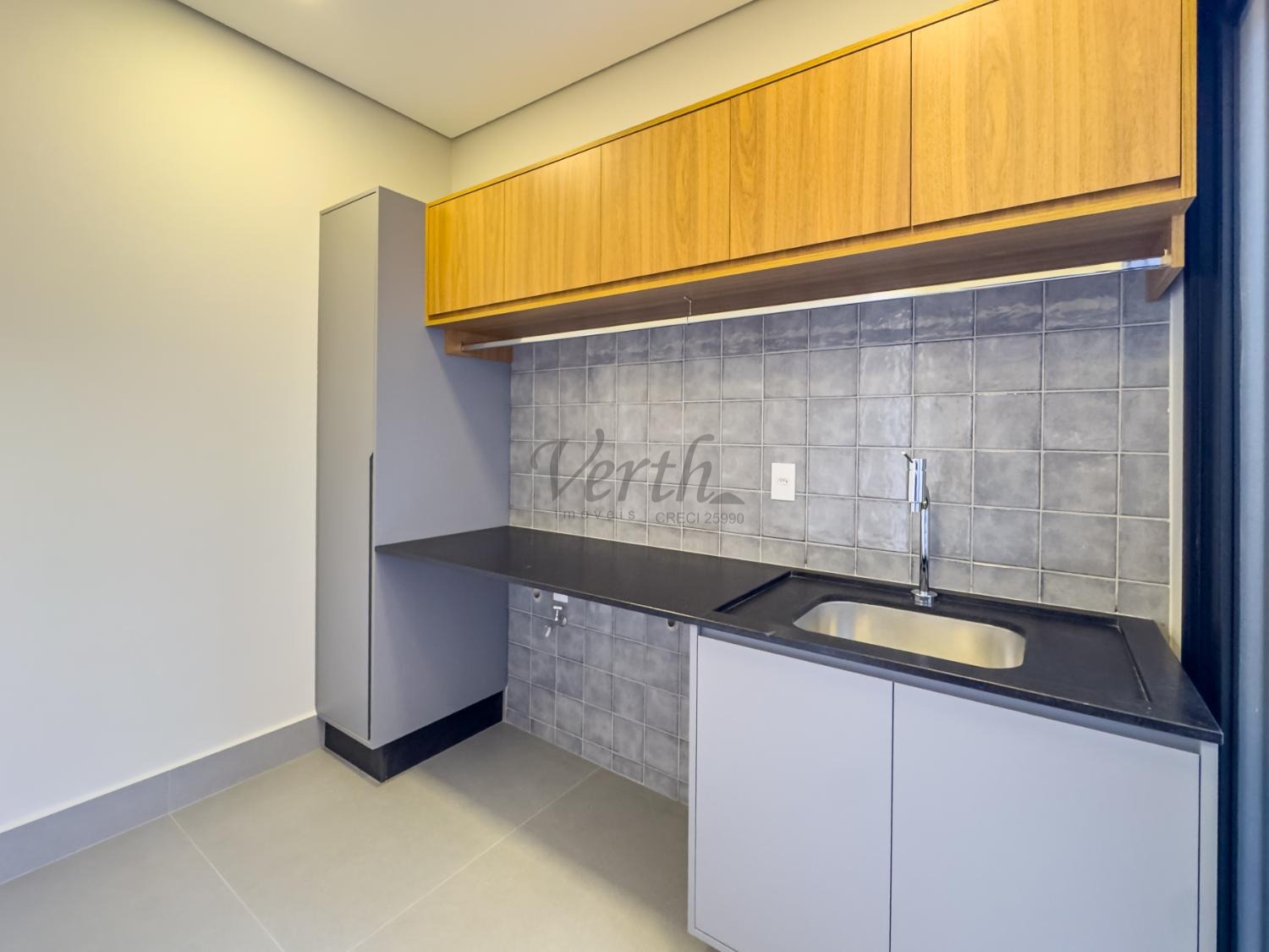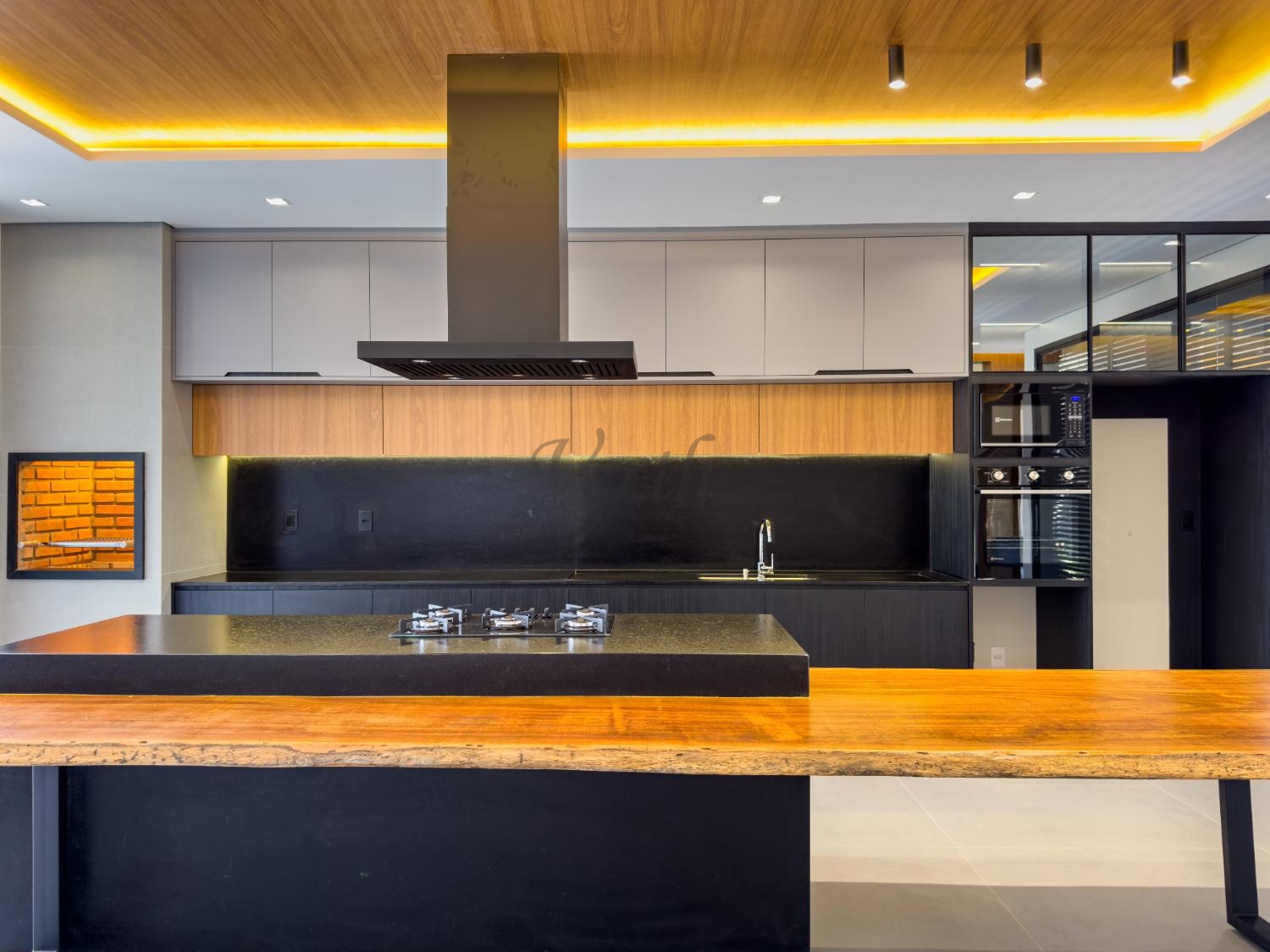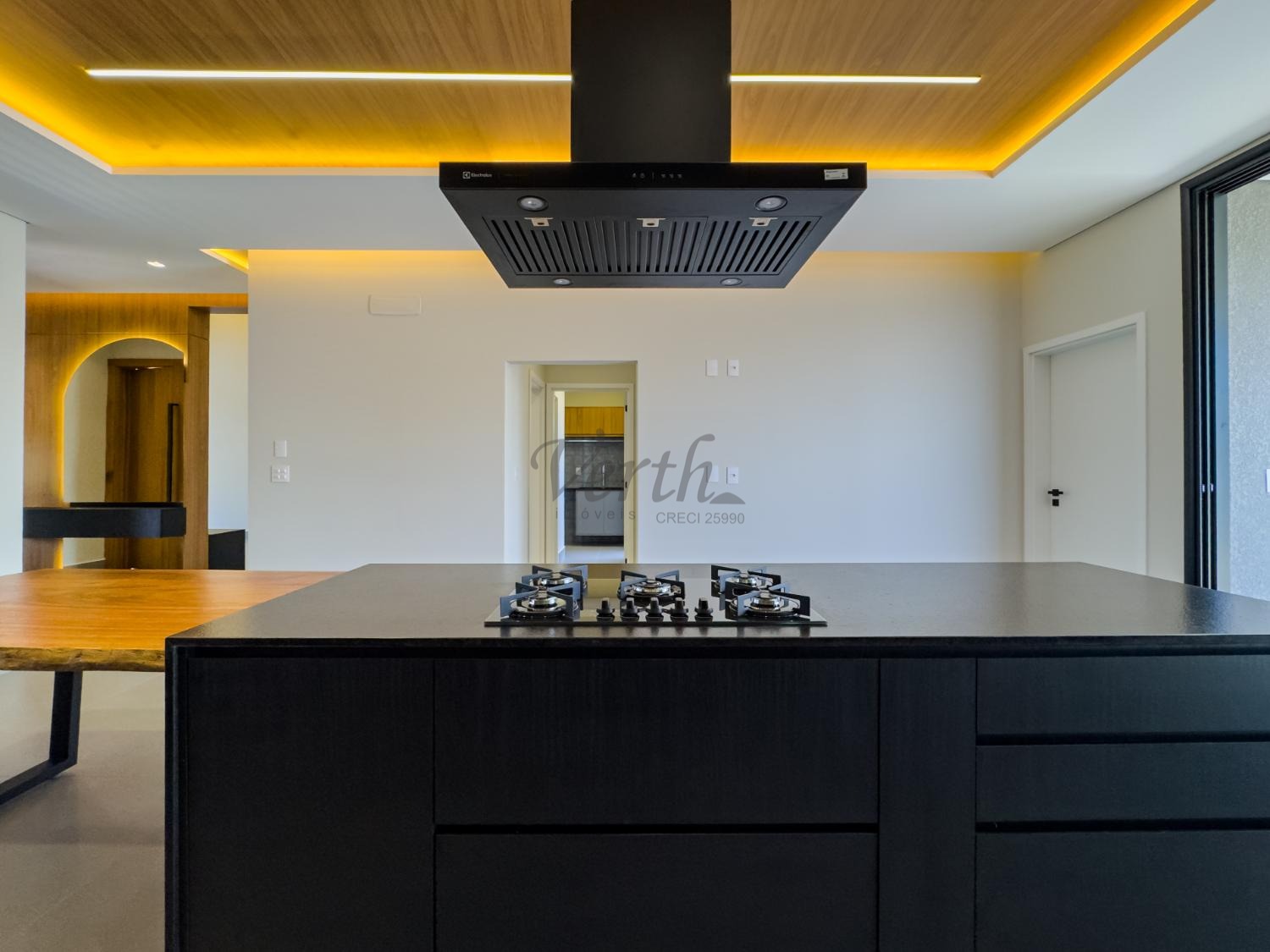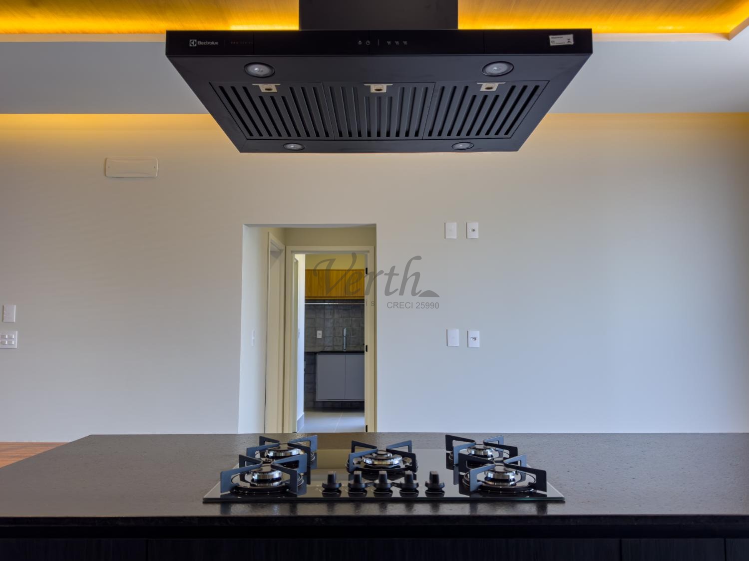 Cozinha moderna com cooktop, armários e acabamento de alto padrão