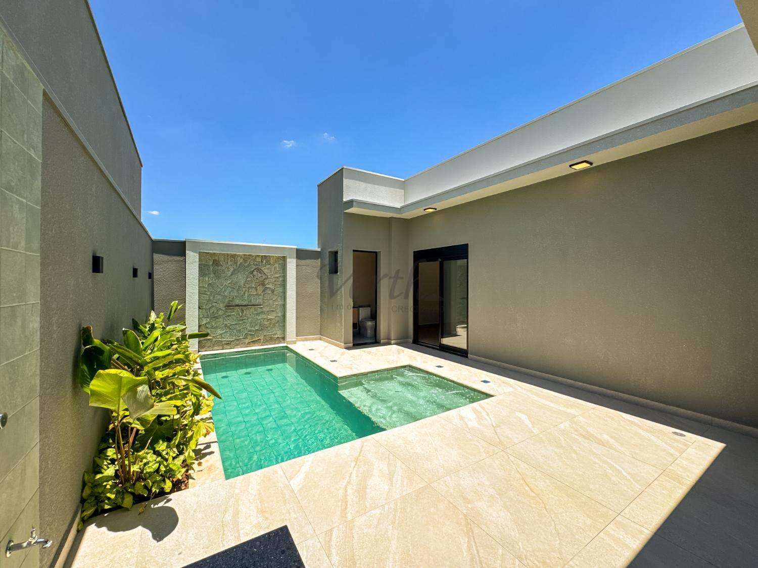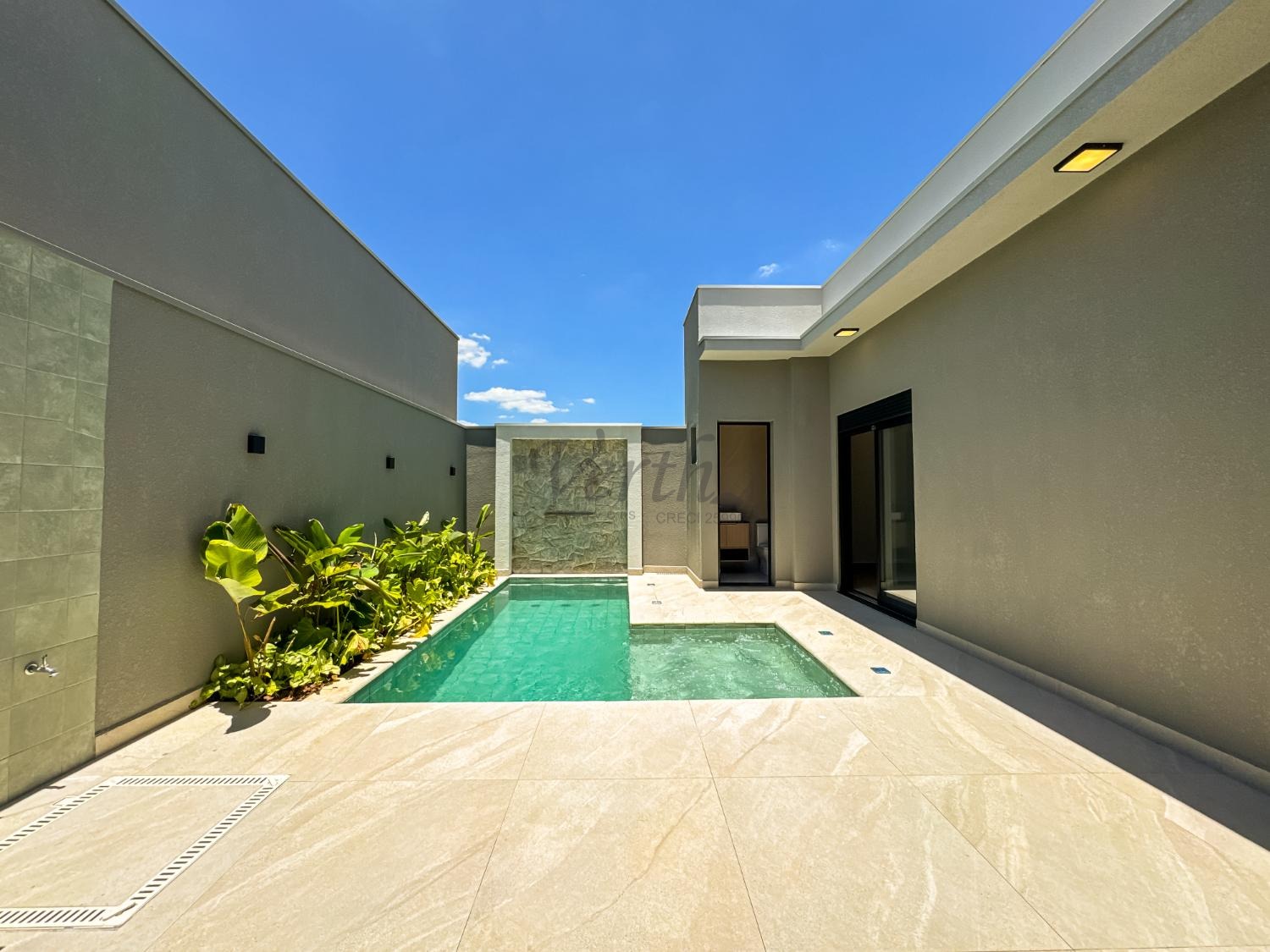 Piscina com cascata, hidro e preparação para aquecimento;