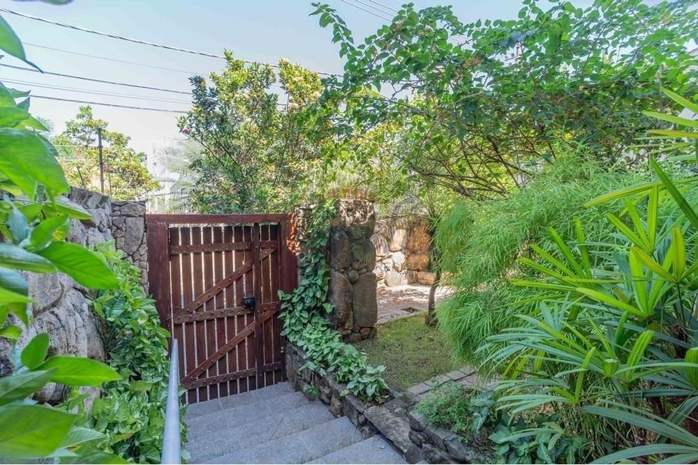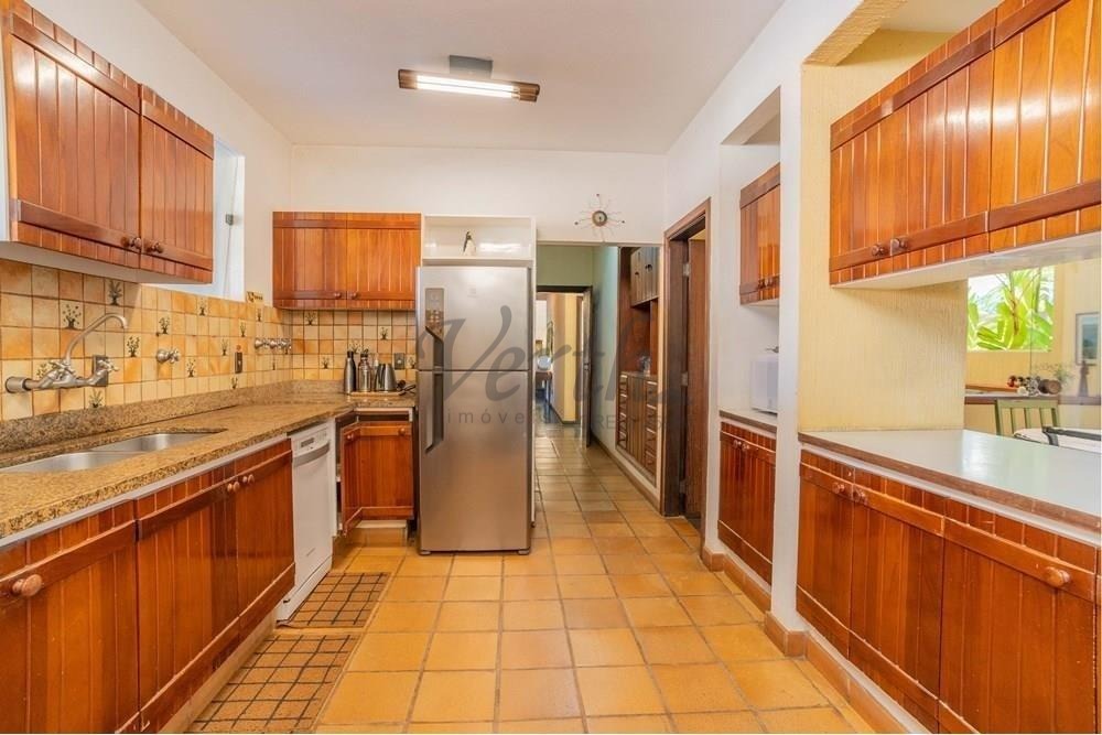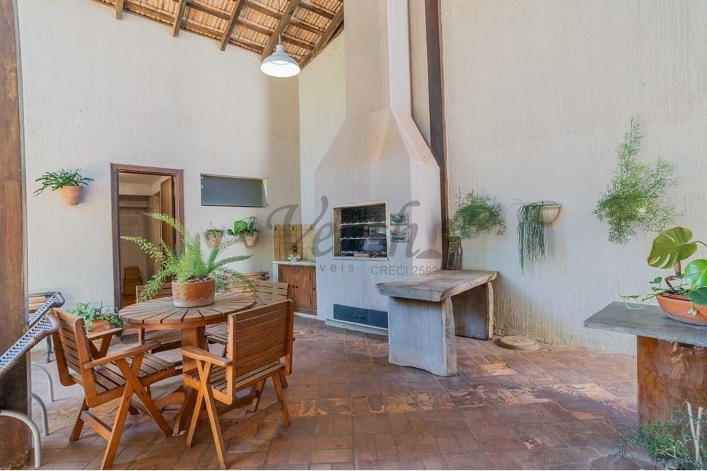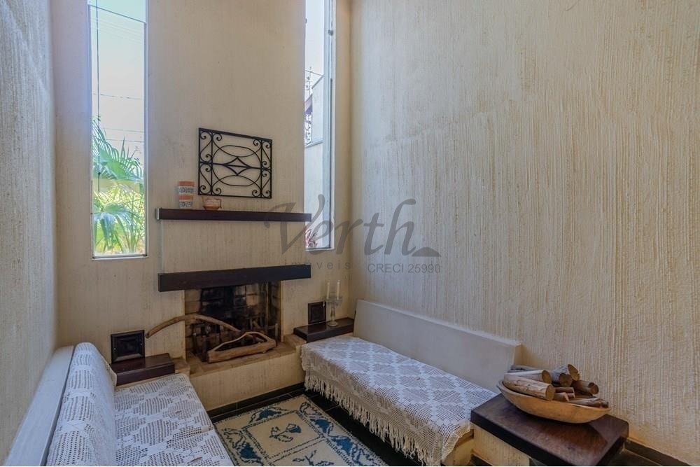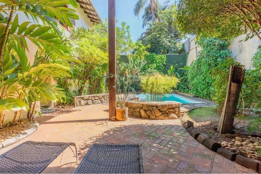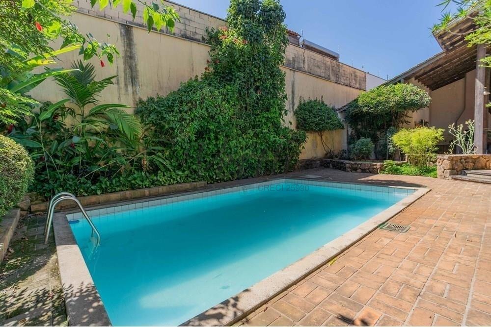 A área externa possui uma piscina de 32 metros, churrasqueira coberta e 01 vestiário com preparo para sauna. O terreno apresenta árvores como 01 Pau-Brasil de 40 anos. A estrutura possui 02 caixas d'água de amianto de 1.000 litros cada e o sistema de segurança inclui cerca elétrica. A rua tem monitoramento 24 horas mantido pelos moradores há mais de 30 anos.