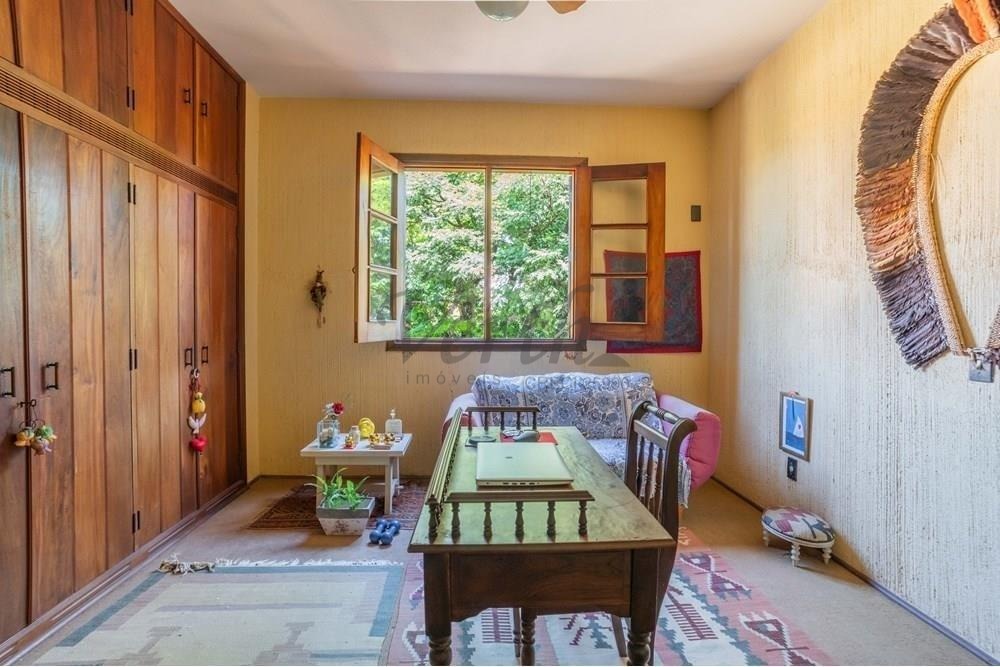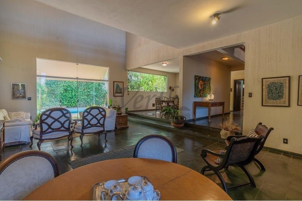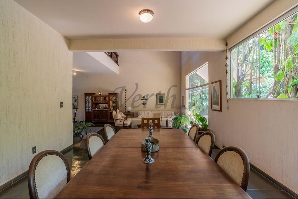O imóvel dispõe de 01 escritório privativo e 01 lavabo no piso térreo, conectado a salas de estar e jantar com pé-direito duplo de 06 metros. A cozinha americana é integrada à sala de almoço, com 02 despensas de apoio. A área de serviço conta com 01 lavanderia, 01 quarto e 01 banheiro de suporte. Há garagem com capacidade para 04 carros.