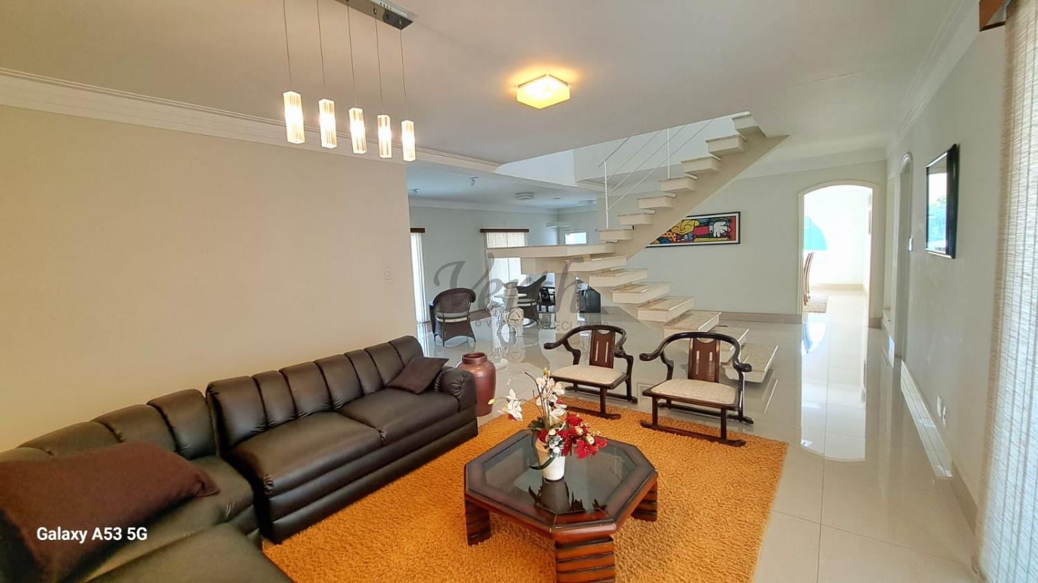 Com 800 m² de área construída em um terreno de 1.263 m², a casa oferece amplos e confortáveis ambientes. São duas salas de estar, sala de TV, sala íntima, sala de jantar e lavabo. Conta ainda com quatro suítes, sendo uma master, além de cozinha planejada e área de serviço completa com vestiário e dependência para empregados.