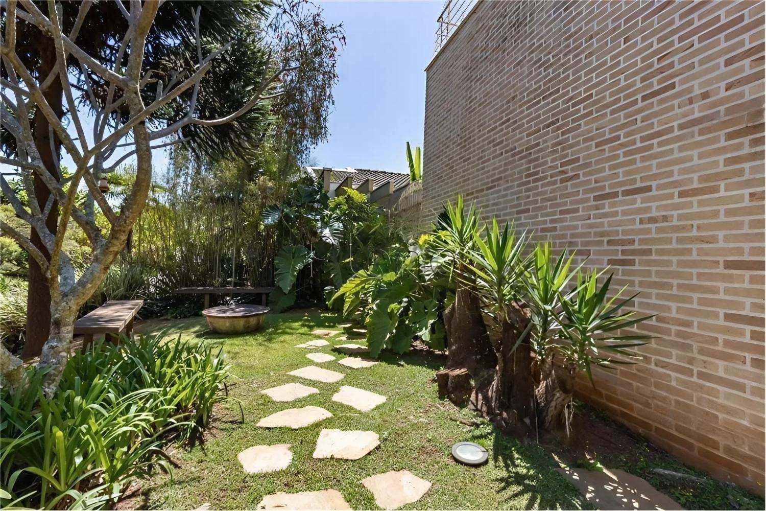 Jardim paisagístico com iluminação cênica e espécies selecionadas