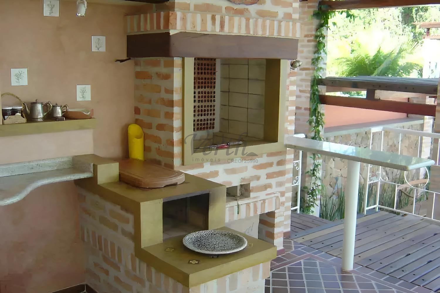 Espaço gourmet completo com churrasqueira, forno de pizza e fogão à lenha