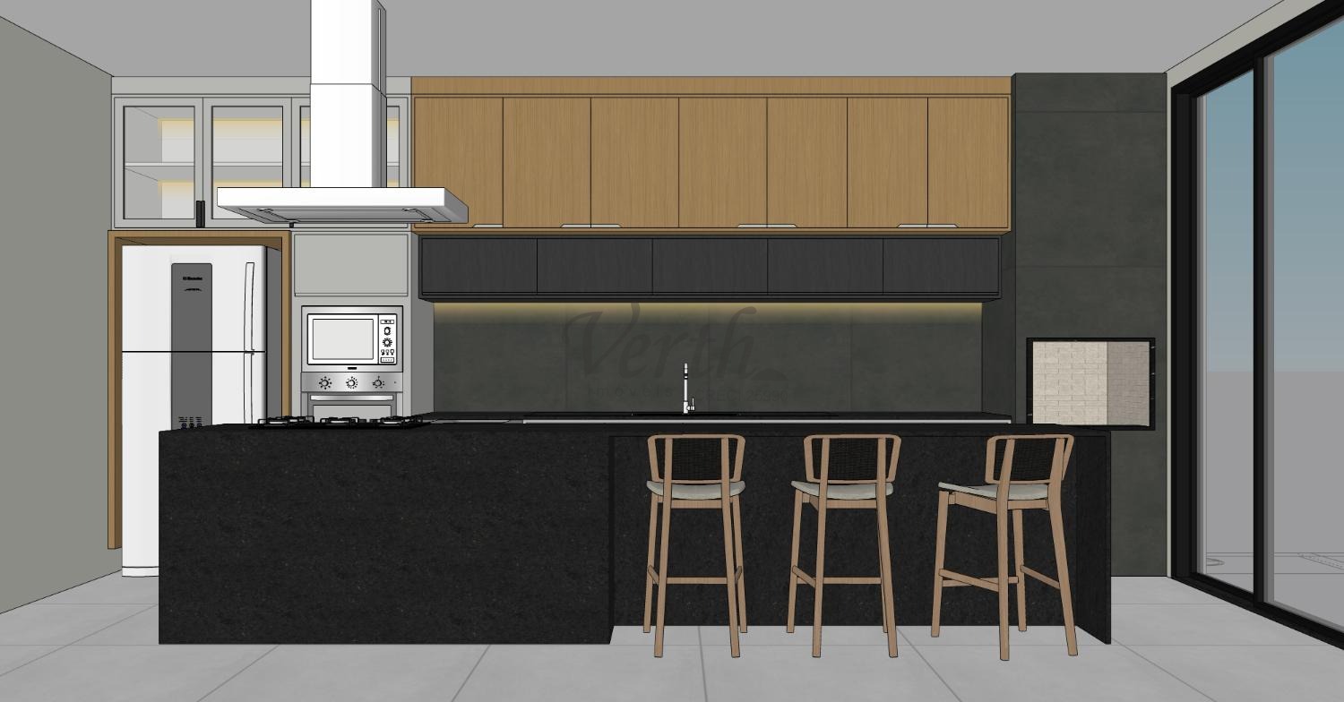 Cozinha equipada com cooktop, forno, micro-ondas, coifa e armários planejados