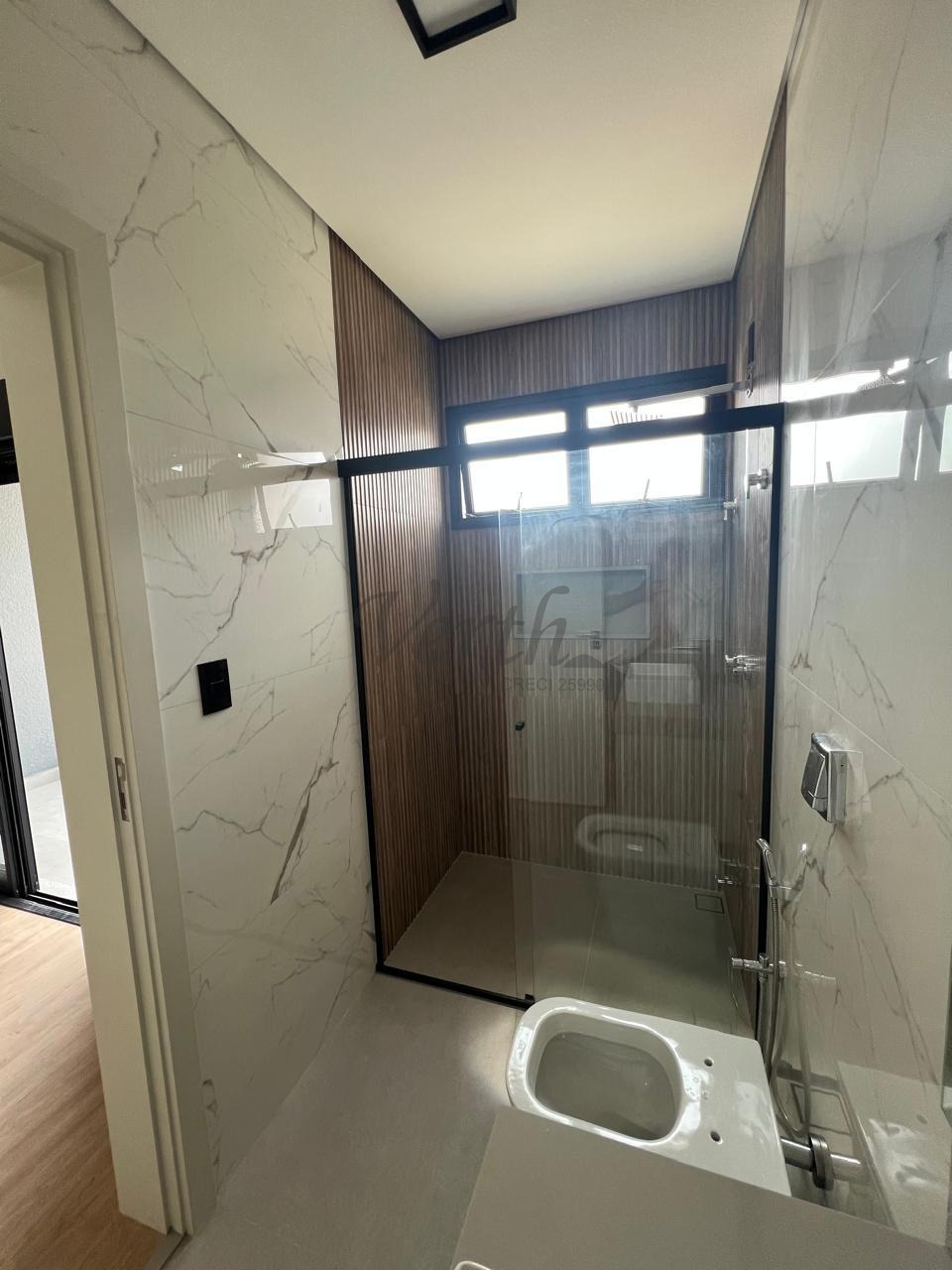 Lustres, espelhos com LED e box em vidro em todos os banheiros