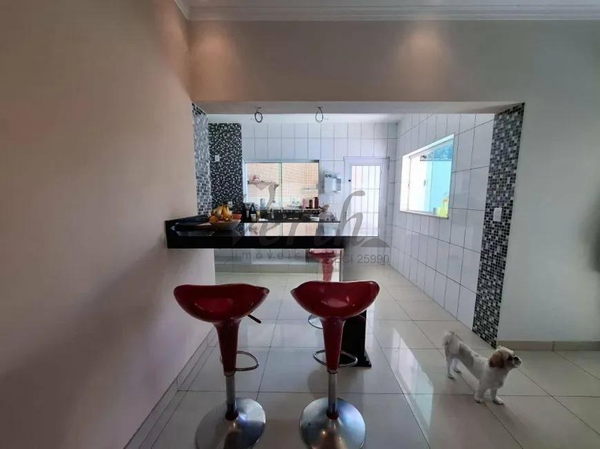 Logo na entrada, a casa impressiona pela bela porta de madeira de demolição e pelo living amplo para três ambientes, muito bem iluminado e arejado, com acabamento em porcelanato. A sala de jantar é integrada à cozinha, que conta com despensa e lavanderia, além de escritório e lavabo. A área de lazer é completa, com churrasqueira, forno de pizza, piscina central ao projeto e banheiro de apoio, ideal para receber amigos e familiares.