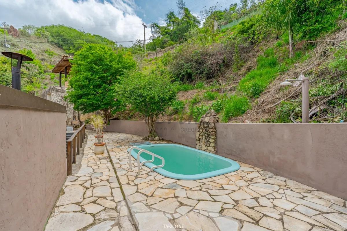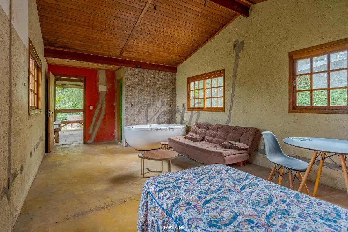 Como diferencial, o terreno possui saída exclusiva para a rua superior, onde se encontra um charmoso chalé com suíte e vista panorâmica privilegiada, cercado por vegetação. Este espaço é perfeito para hóspedes ou para geração de renda através de locação por temporada, agregando ainda mais valor e versatilidade ao imóvel.