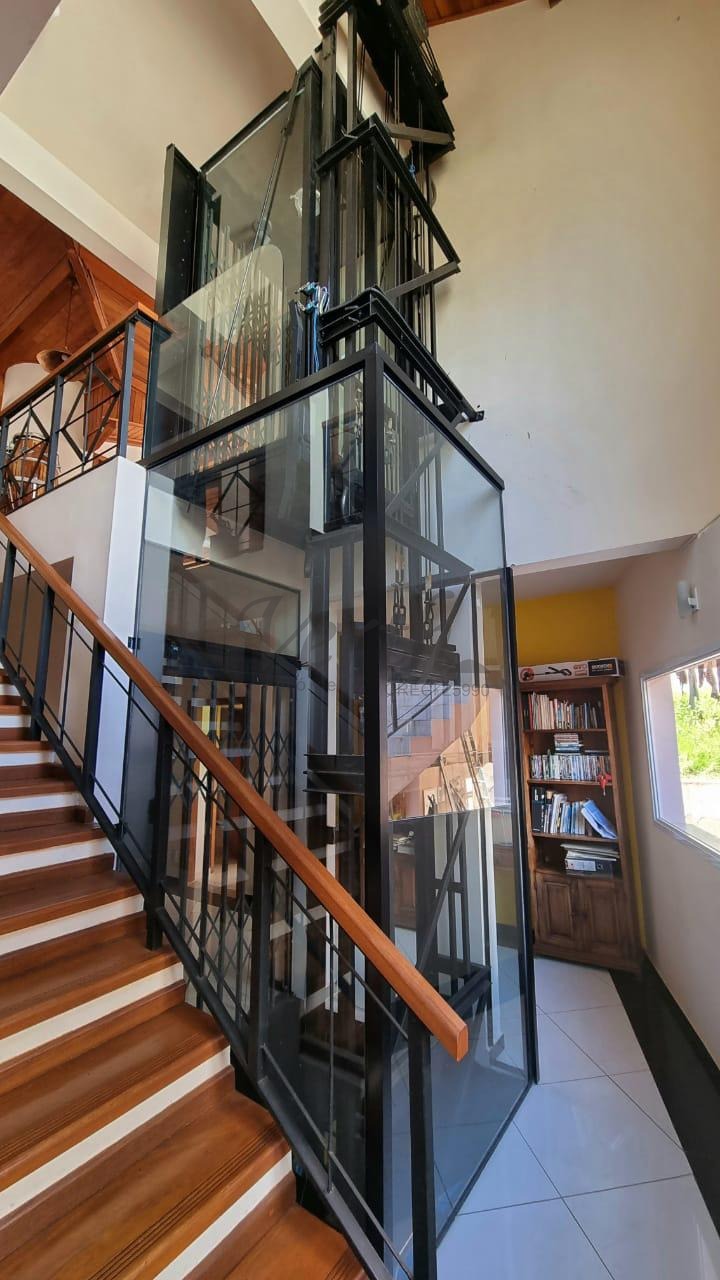 A residência conta com acabamentos atuais e charmosos, quatro dormitórios, sendo duas suítes, com destaque para a suíte no primeiro piso, que oferece praticidade e acessibilidade. O imóvel possui elevador espaçoso, aquecimento solar, lareira de carbono, esquadrias de alumínio, telas em todas as janelas e madeiras maciças de excelente qualidade, evidenciando o alto padrão construtivo.