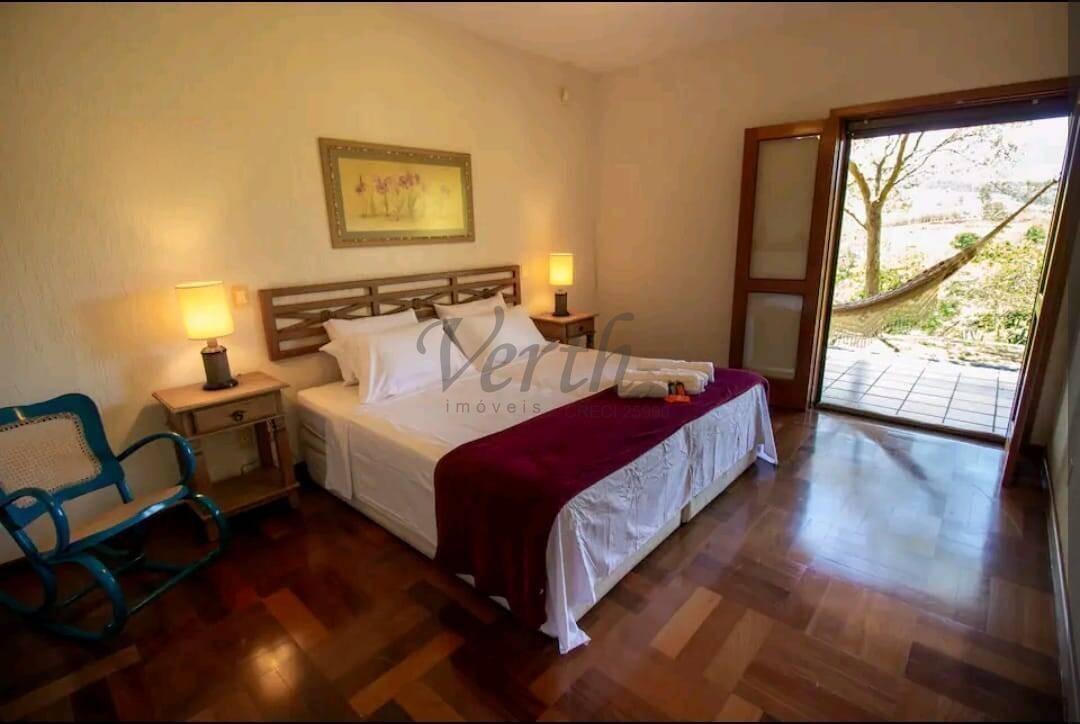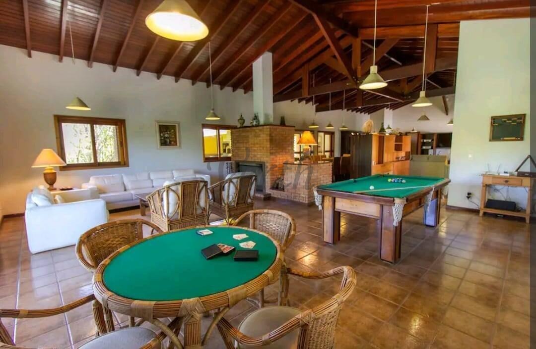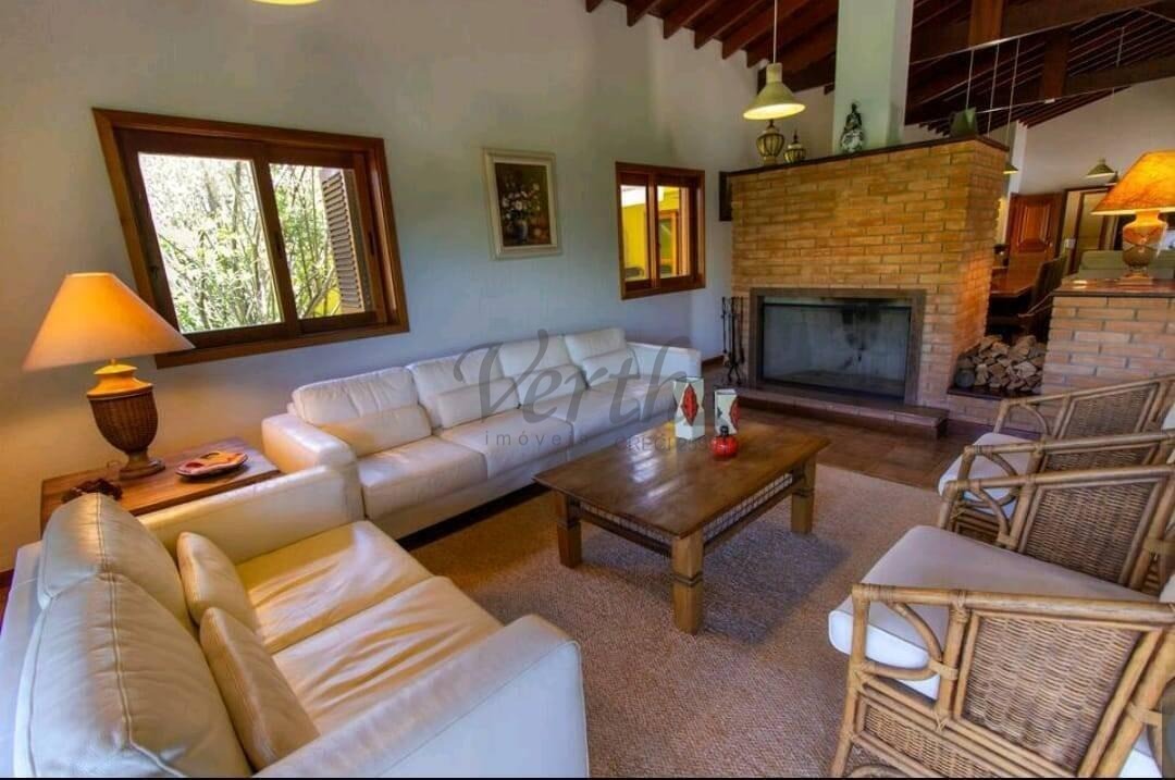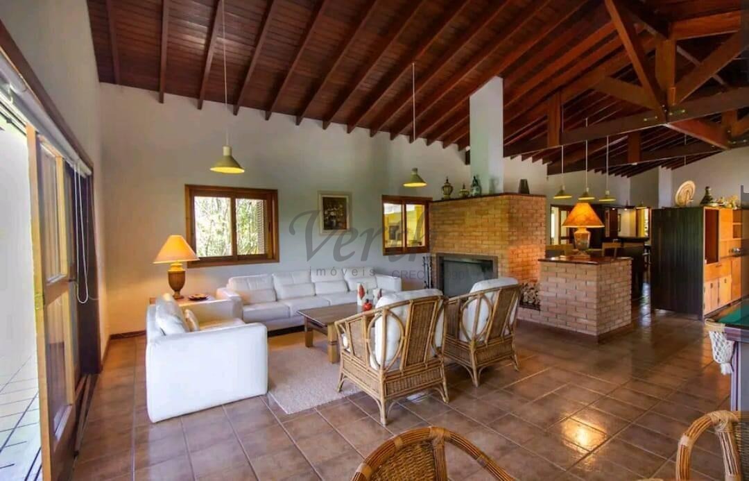 A residência principal é ampla, muito bem distribuída e extremamente iluminada naturalmente. Conta com sala espaçosa para 3 ambientes, lareira, varanda com vista privilegiada, cozinha grande com armários planejados, despensa funcional e lavanderia independente, proporcionando conforto e praticidade para o dia a dia.