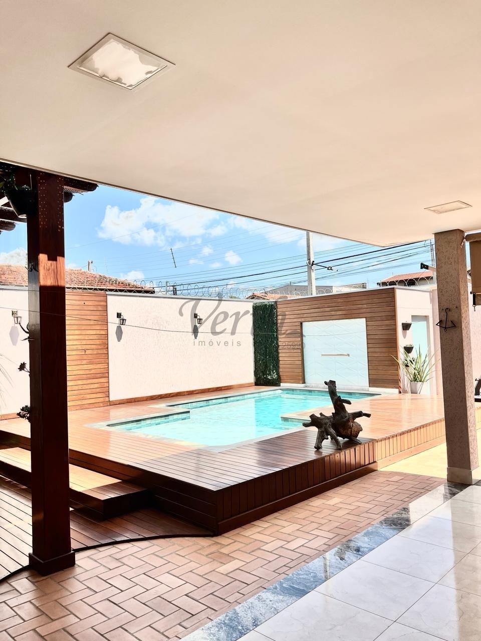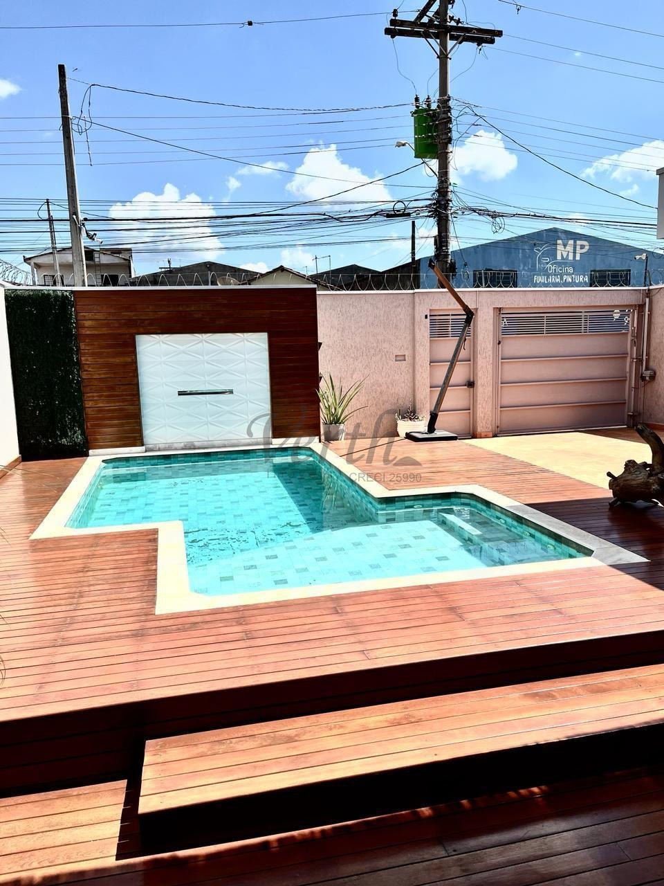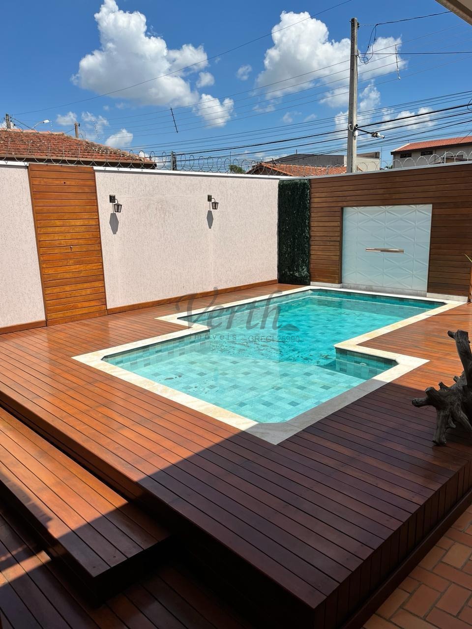 -Piscina com Deck, pergolado, jadim;
