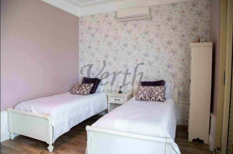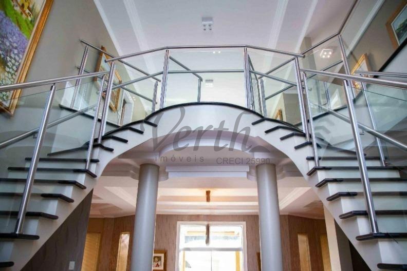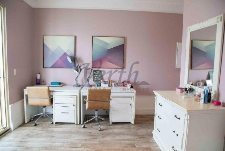 A casa apresenta arquitetura clássica, proporções generosas e ambientes bem distribuídos. O hall de entrada, com pé-direito duplo, conduz a um living elegante, organizado em quatro ambientes, além de escritório reservado, ideal para quem busca conforto aliado à funcionalidade.
