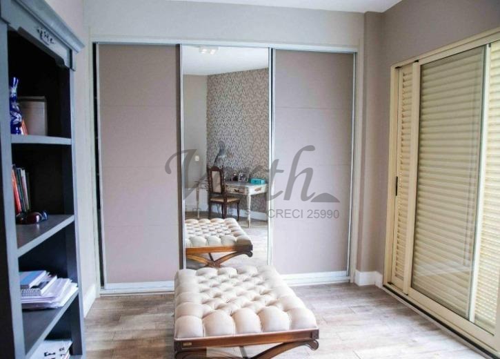 O imóvel é totalmente mobiliado, com peças selecionadas e acabamento de qualidade. São quatro suítes amplas, todas com closet e varanda. A suíte master se destaca pelo espaço, pela divisão em dois ambientes e pela hidromassagem.