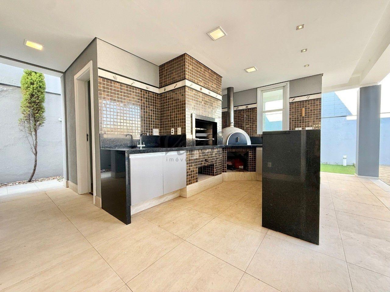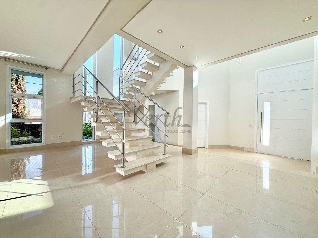 Este elegante sobrado alia conforto, sofisticação e um projeto funcional pensado para toda a família. No piso térreo, o living com pé-direito alto integra três ambientes com amplitude e luminosidade, além de contar com sala de TV reservada, escritório, despensa e cozinha planejada conectada de forma prática à área gourmet.