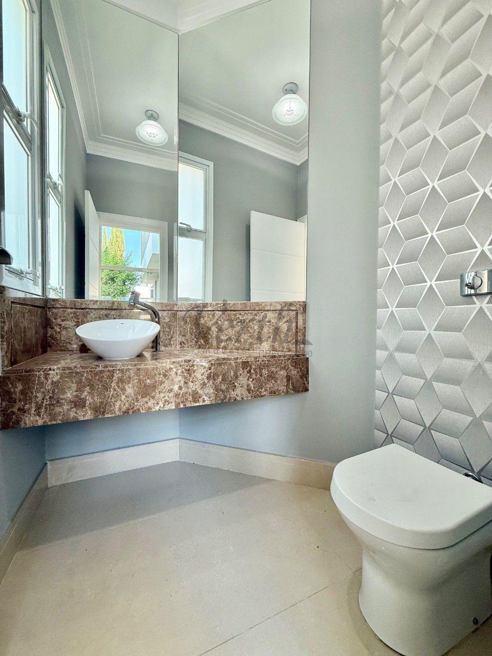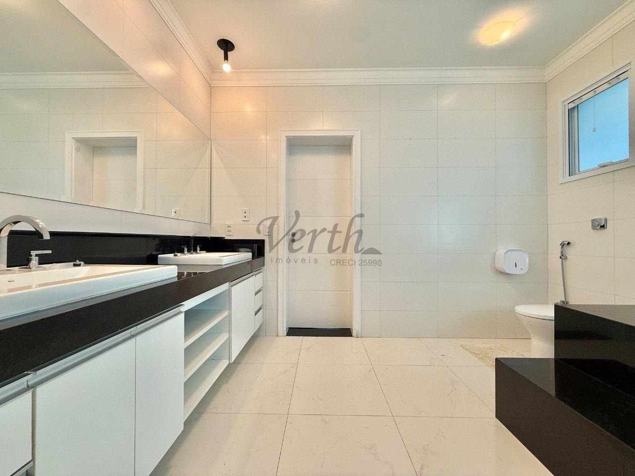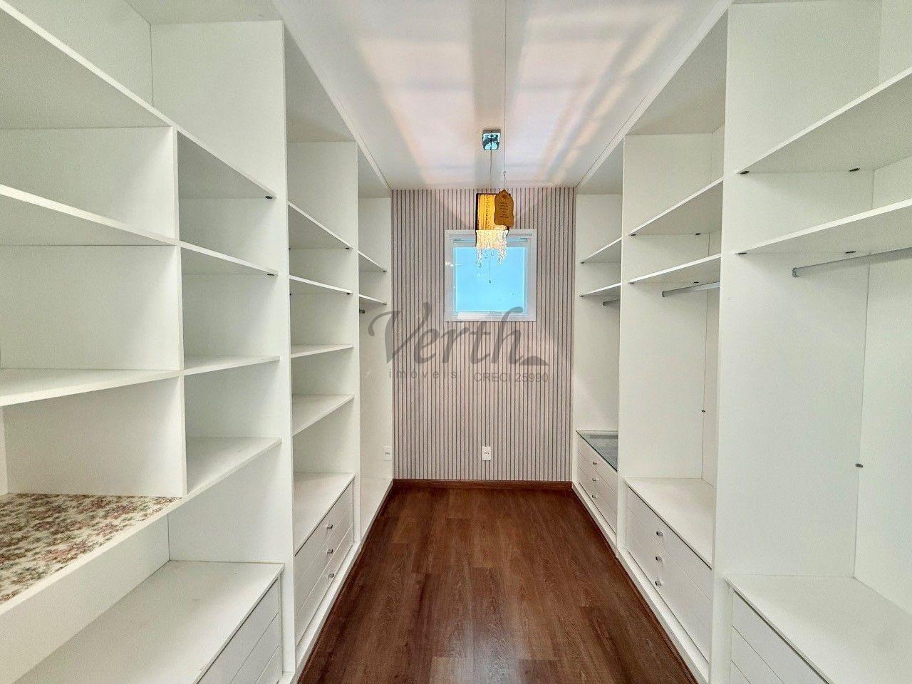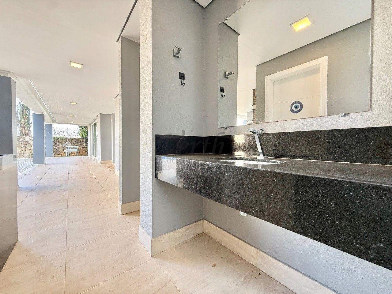 No piso superior, são quatro suítes amplas, incluindo a suíte master com closet duplo e hidromassagem. Como diferencial, o imóvel apresenta uma solução inteligente no banheiro da suíte principal, permitindo o envio direto de roupas à lavanderia no pavimento térreo, unindo praticidade e sofisticação em cada detalhe.
