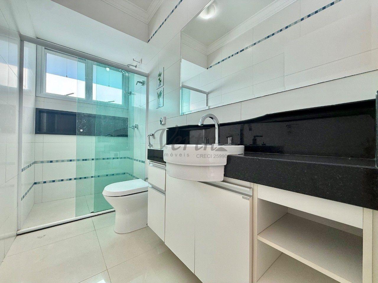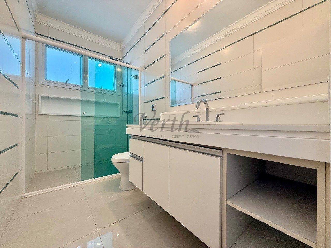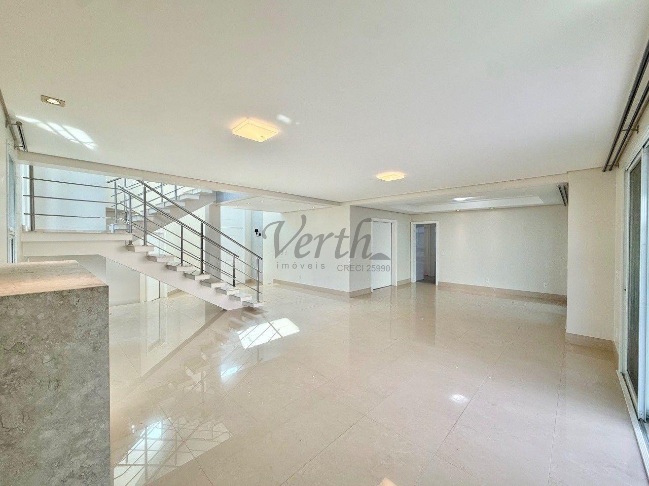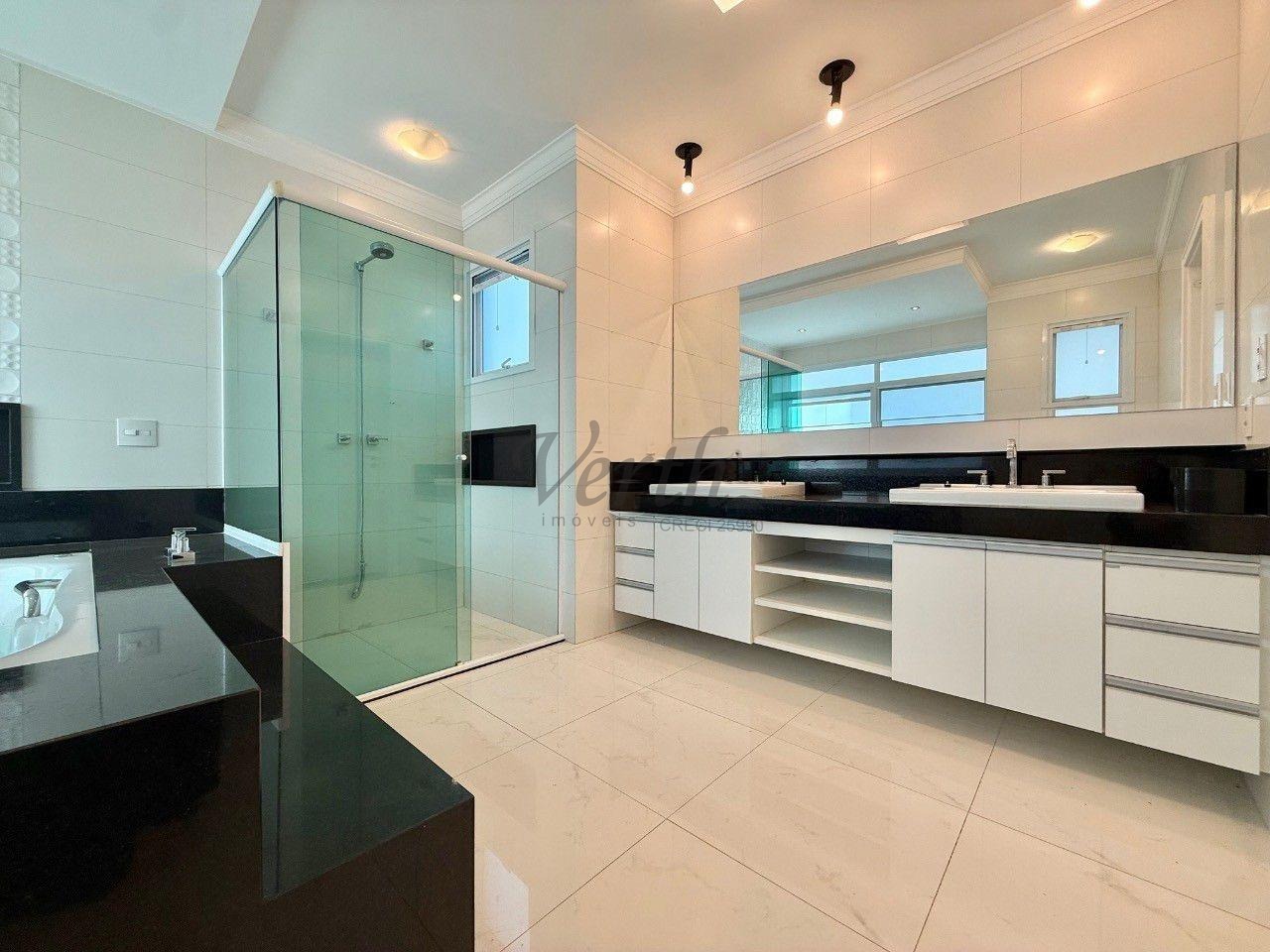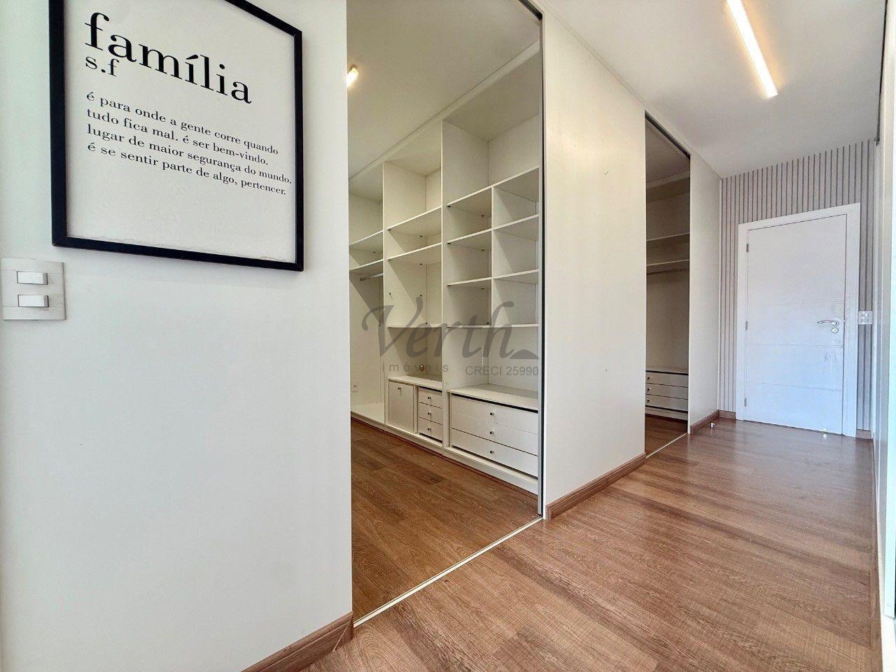 No piso superior, são quatro suítes amplas, incluindo a suíte master com closet duplo e hidromassagem. Como diferencial, o imóvel apresenta uma solução inteligente no banheiro da suíte principal, permitindo o envio direto de roupas à lavanderia no pavimento térreo, unindo praticidade e sofisticação em cada detalhe.