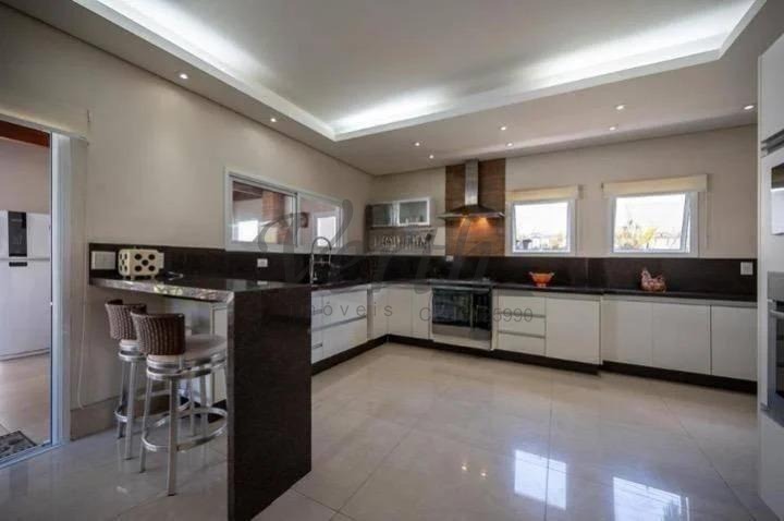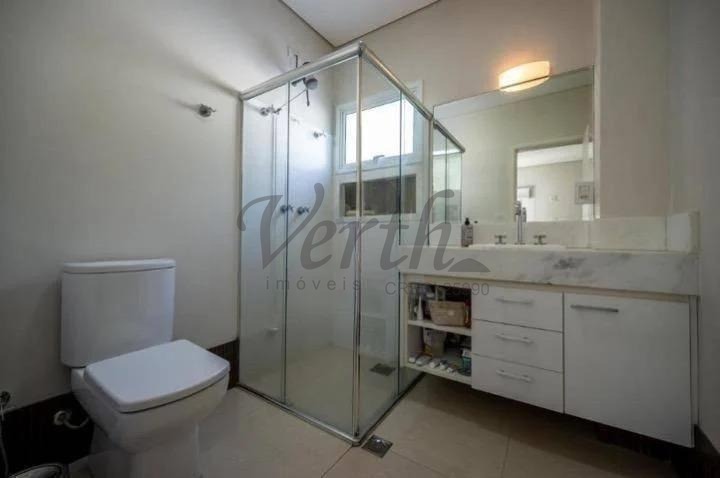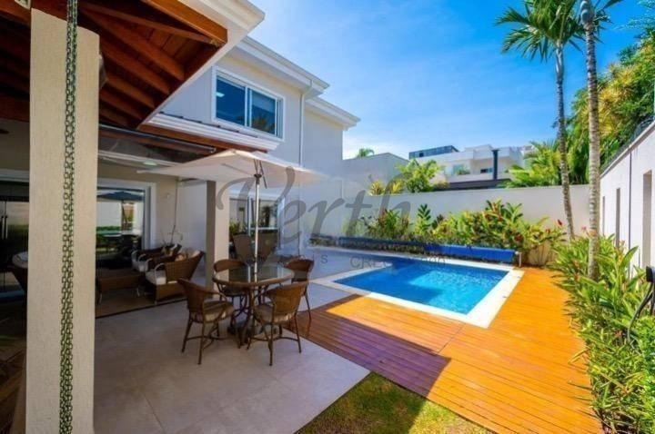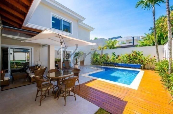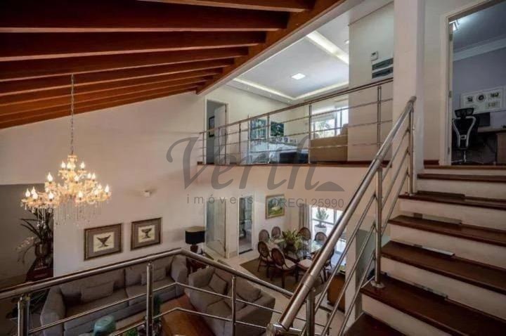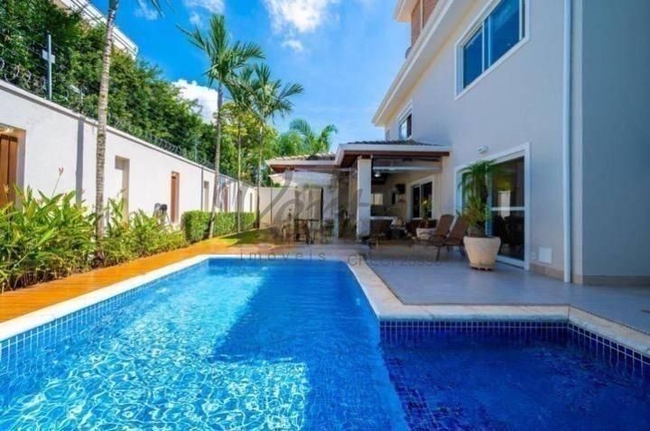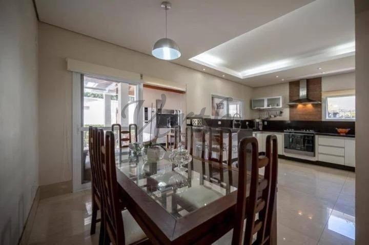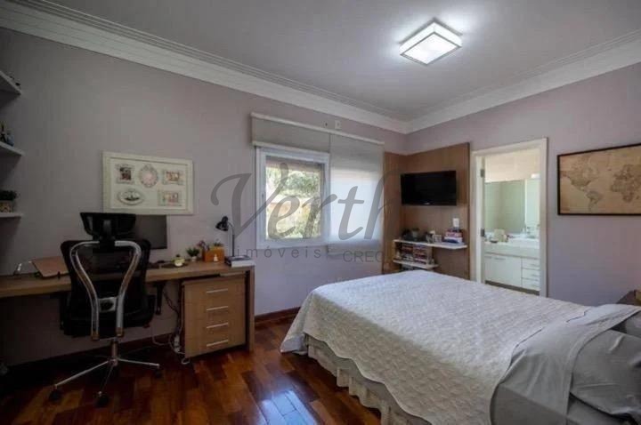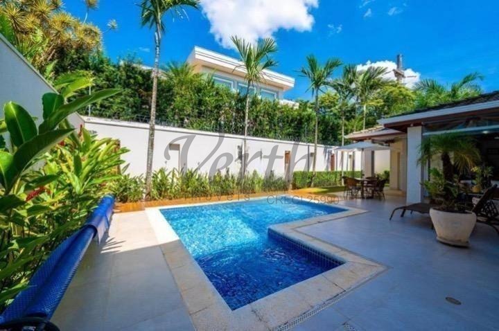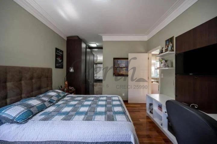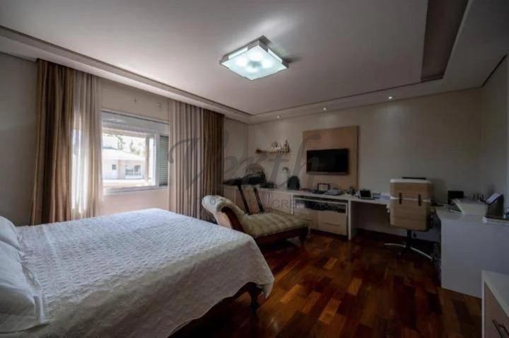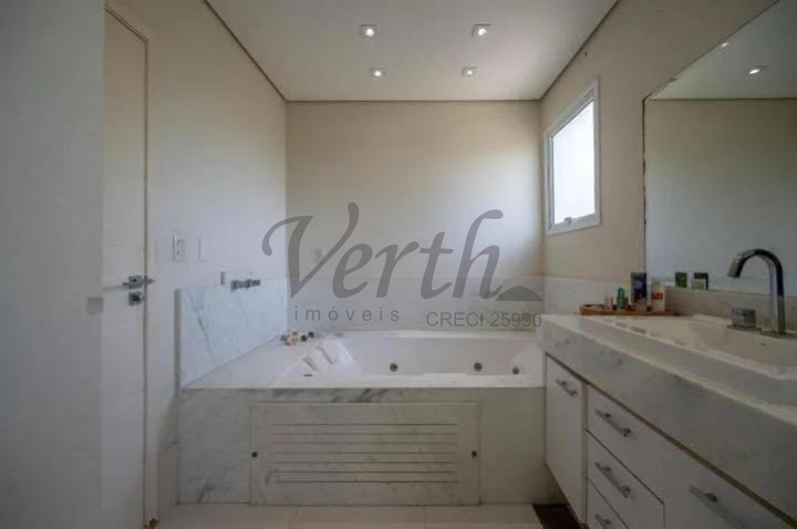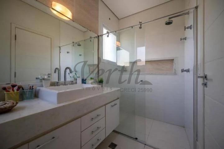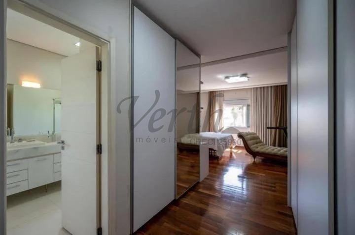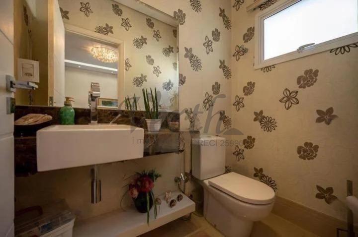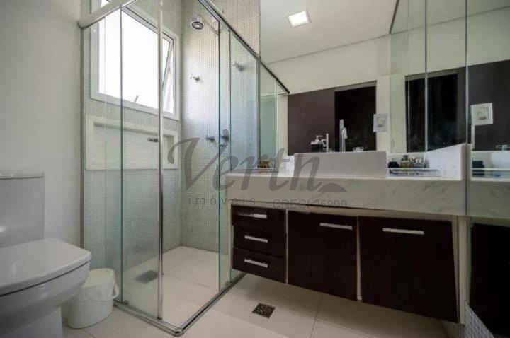 O imóvel dispõe de três suítes, todas equipadas com hidromassagem, além de dormitório reversível, escritório, lavabo e seis banheiros distribuídos de forma funcional.