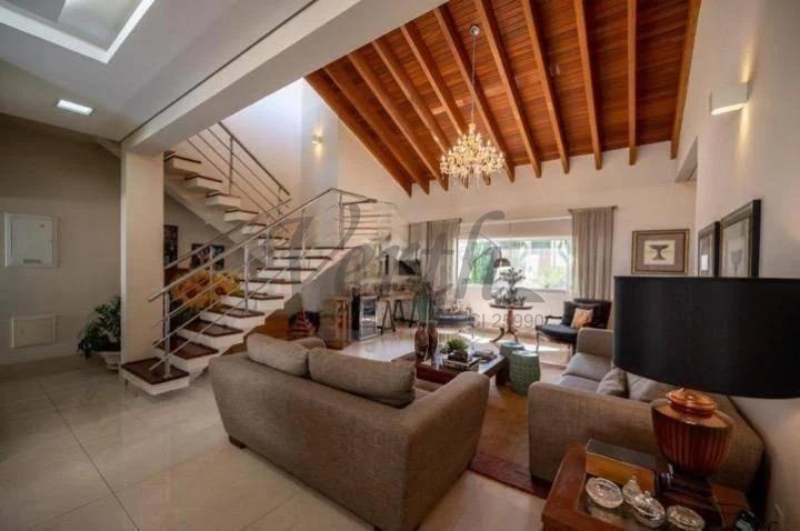 Residência com 343 m² de área construída, marcada por projeto arquitetônico elegante, pé-direito duplo e ambientes amplos, integrados e bem iluminados.