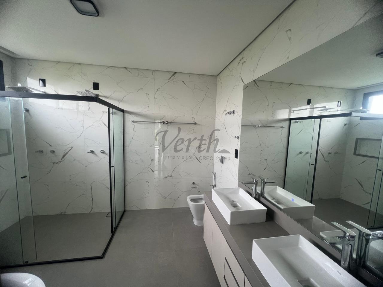 No pavimento superior são 4 suítes com piso vinílico, todas com ar-condicionado. A suíte master possui closet, sacada, banheira de imersão com Air Blower, cromoterapia em LED e box duplo.
