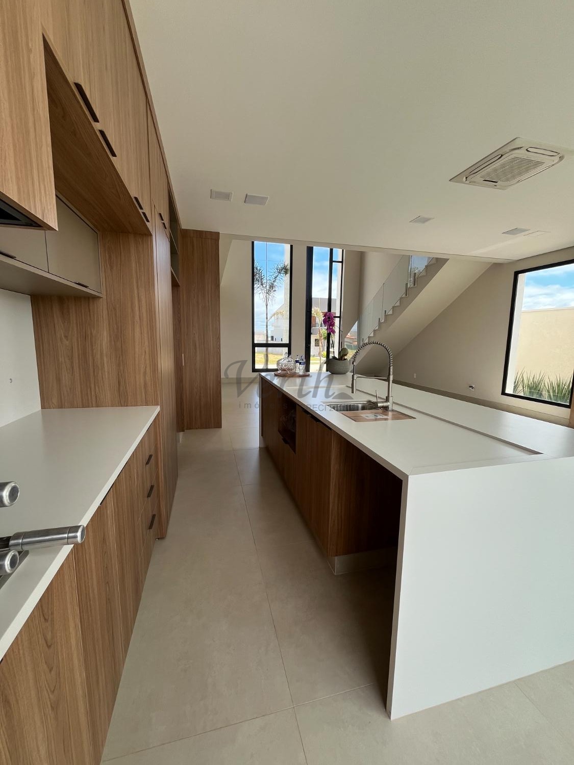 Sala com pé-direito duplo para 2 ambientes, cozinha gourmet integrada, piscina privativa e espaço gourmet. Conta ainda com automação, depósito e 4 vagas de garagem, sendo 2 cobertas.