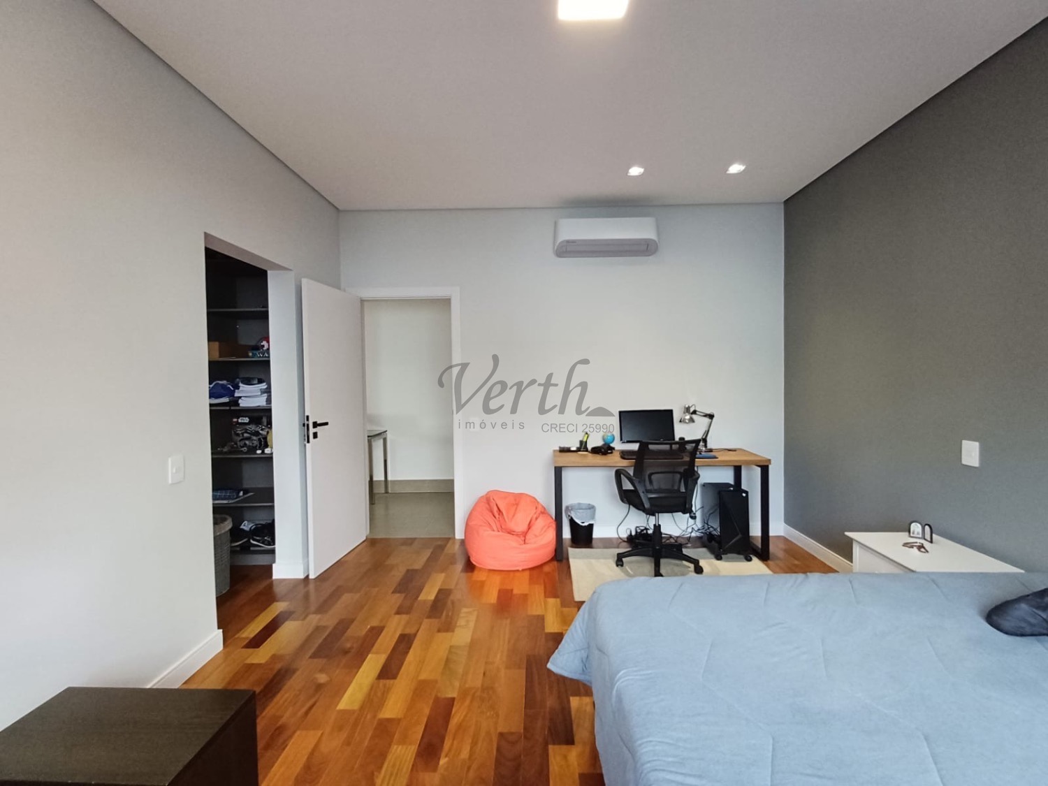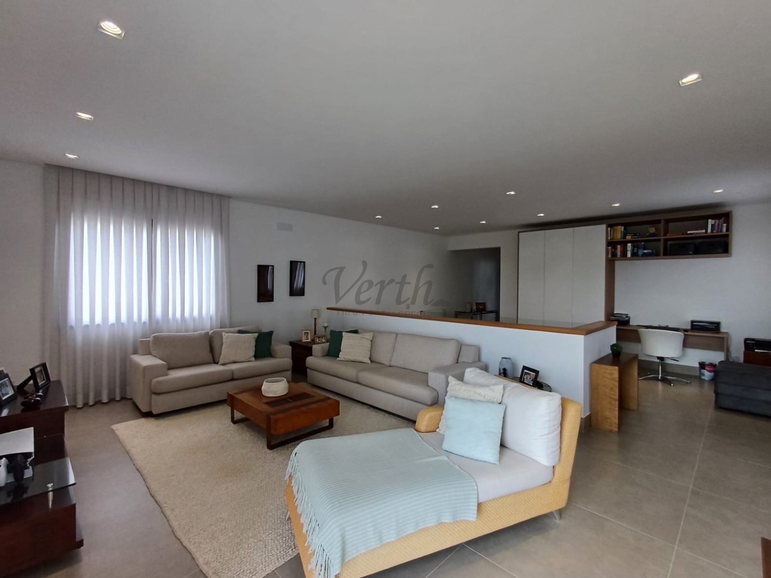 O imóvel conta com acabamentos em porcelanato e marcenaria planejada em diversos ambientes, como cozinha, dormitórios, closet, banheiros, escritório e área de serviço, trazendo praticidade e sofisticação ao dia a dia.