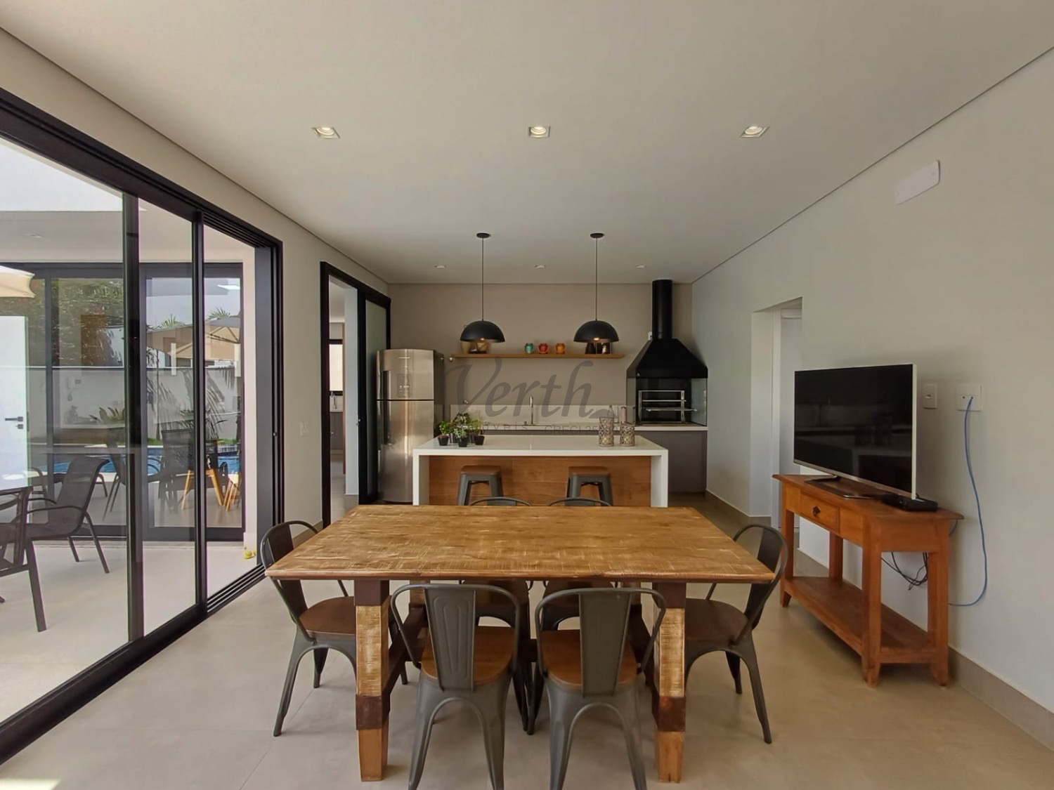 A área social é um convite para viver bons momentos: salas de estar e jantar integradas, lavabo e uma cozinha funcional com despensa. A varanda gourmet é perfeita para receber amigos, integrada a um quintal espaçoso com piscina aquecida, o cenário ideal para finais de semana inesquecíveis.