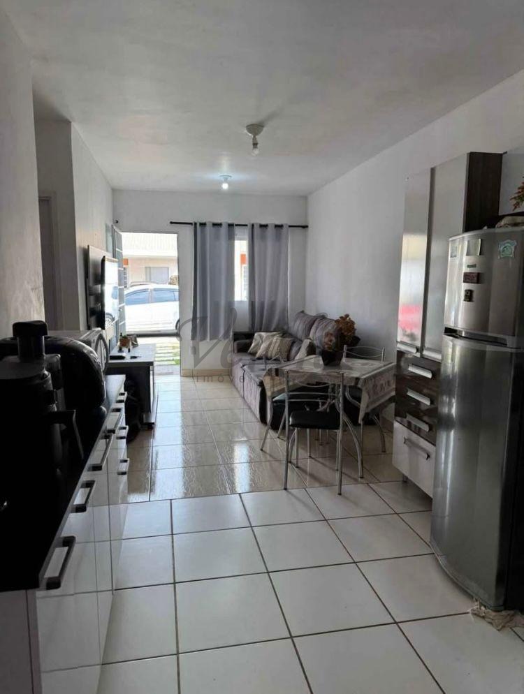 O imóvel conta com 2 dormitórios, sala e cozinha integrados, proporcionando um espaço moderno e funcional, além de banheiro social bem distribuído. Possui garagem para 2 carros, com estrutura liberada para futura cobertura.