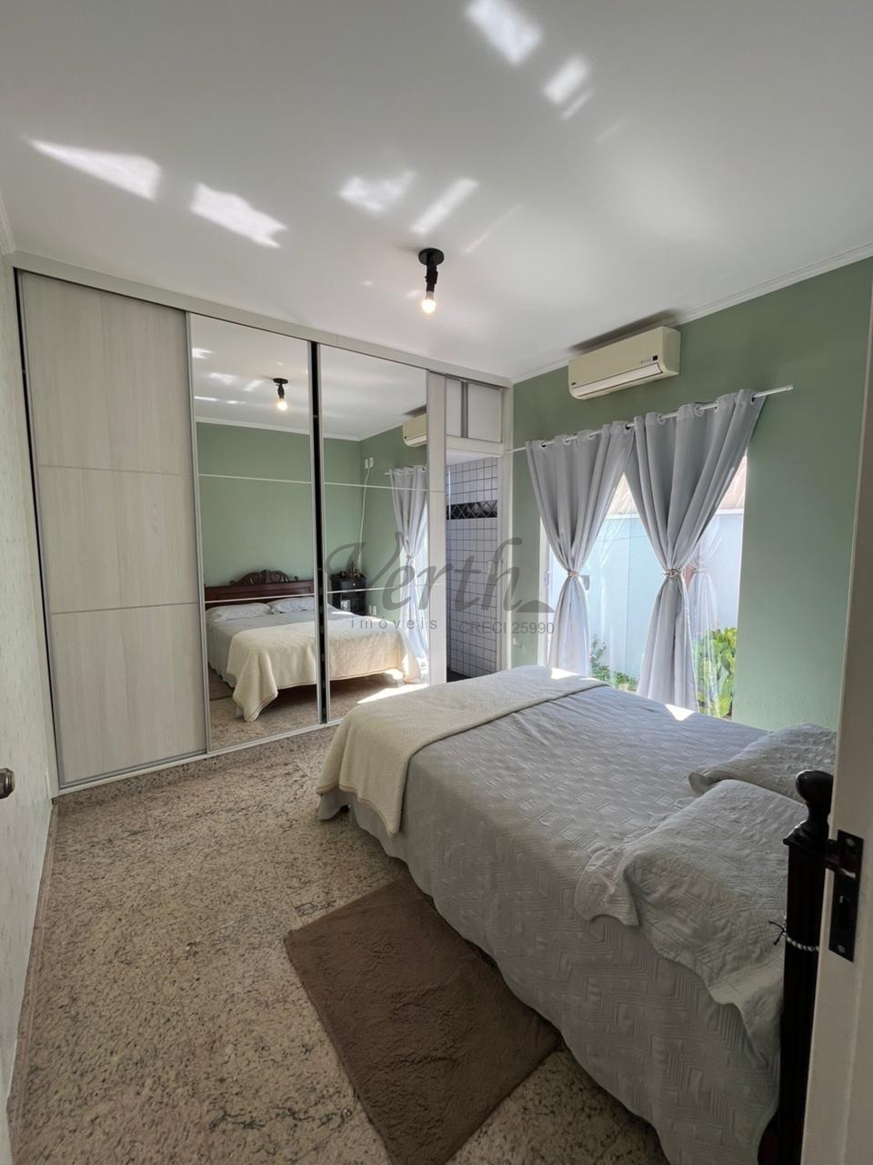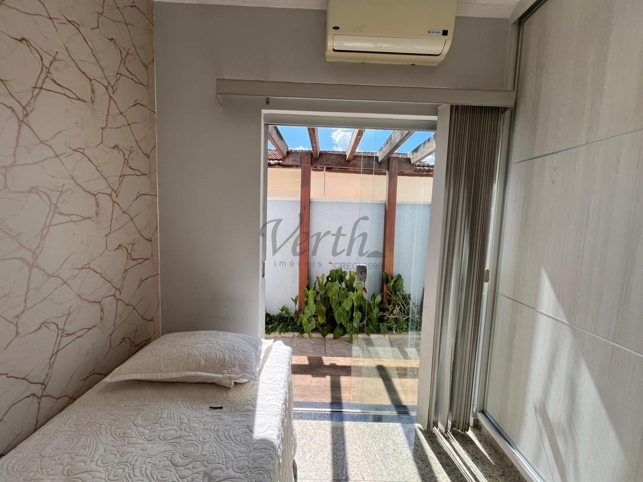 São 3 quartos, sendo 1 suíte, todos com móveis planejados e ar-condicionado, proporcionando praticidade e bem-estar. A casa conta ainda com 2 banheiros bem distribuídos.