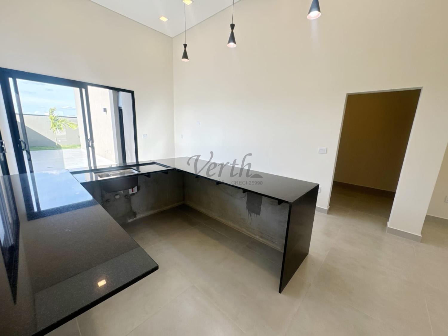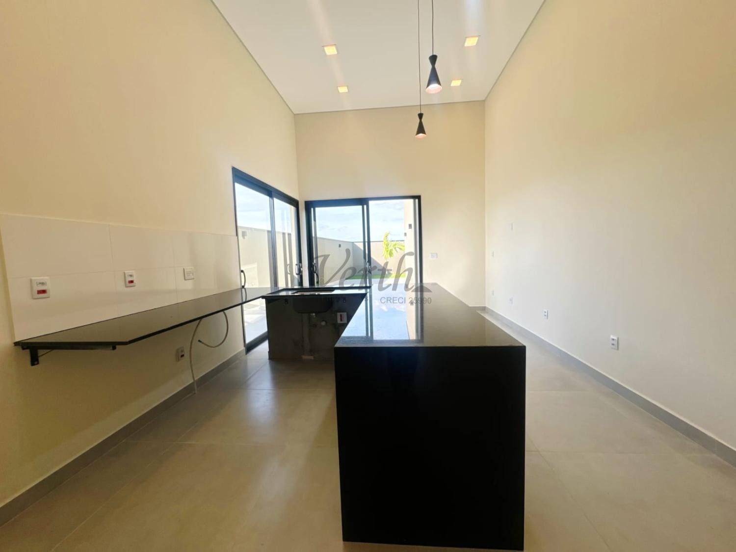 Salas integradas à cozinha, proporcionando amplitude, iluminação e elegância