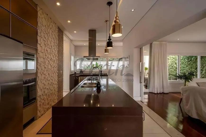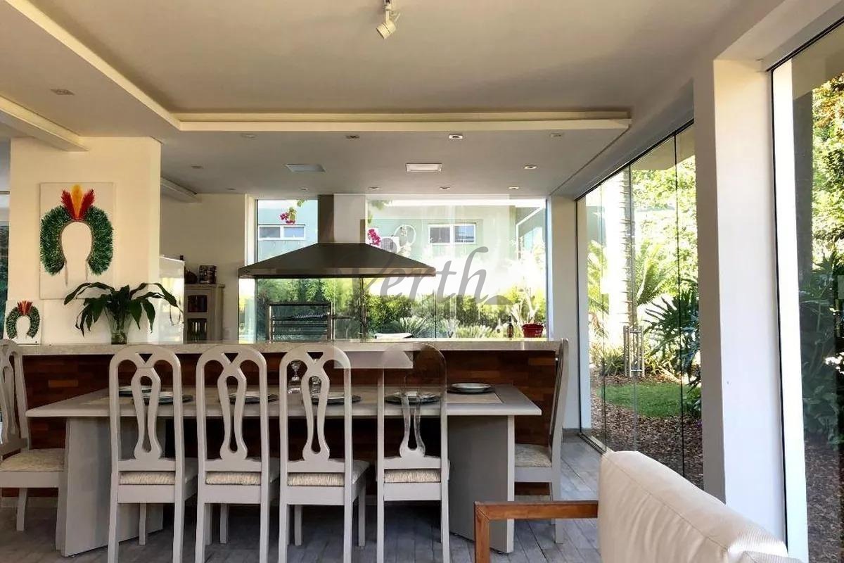 O imóvel é rodeado por paisagismo exuberante, com árvores de grande porte e muita área verde, criando um ambiente de tranquilidade e contato com a natureza.