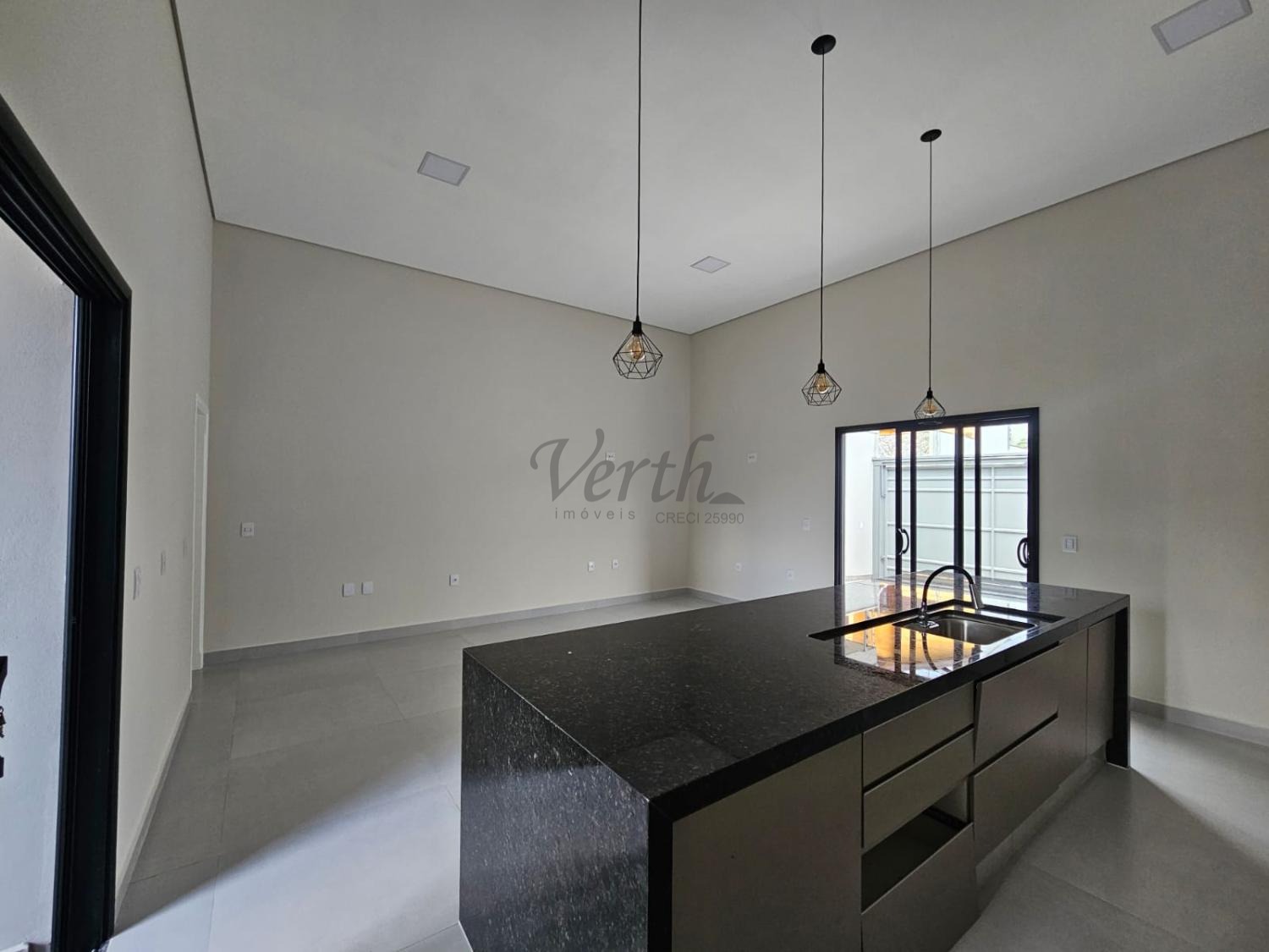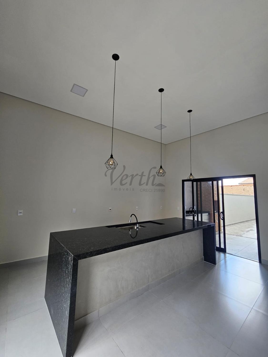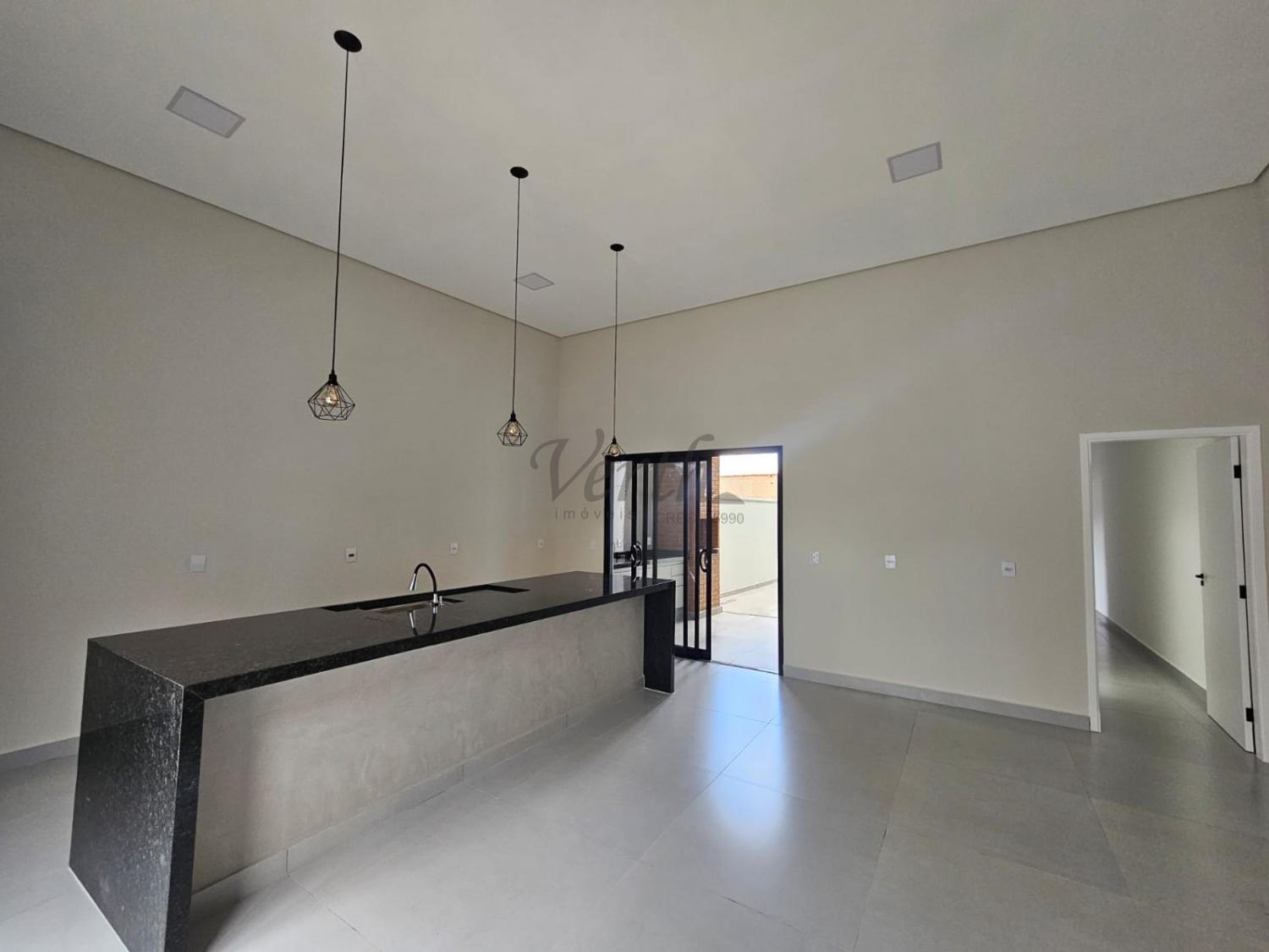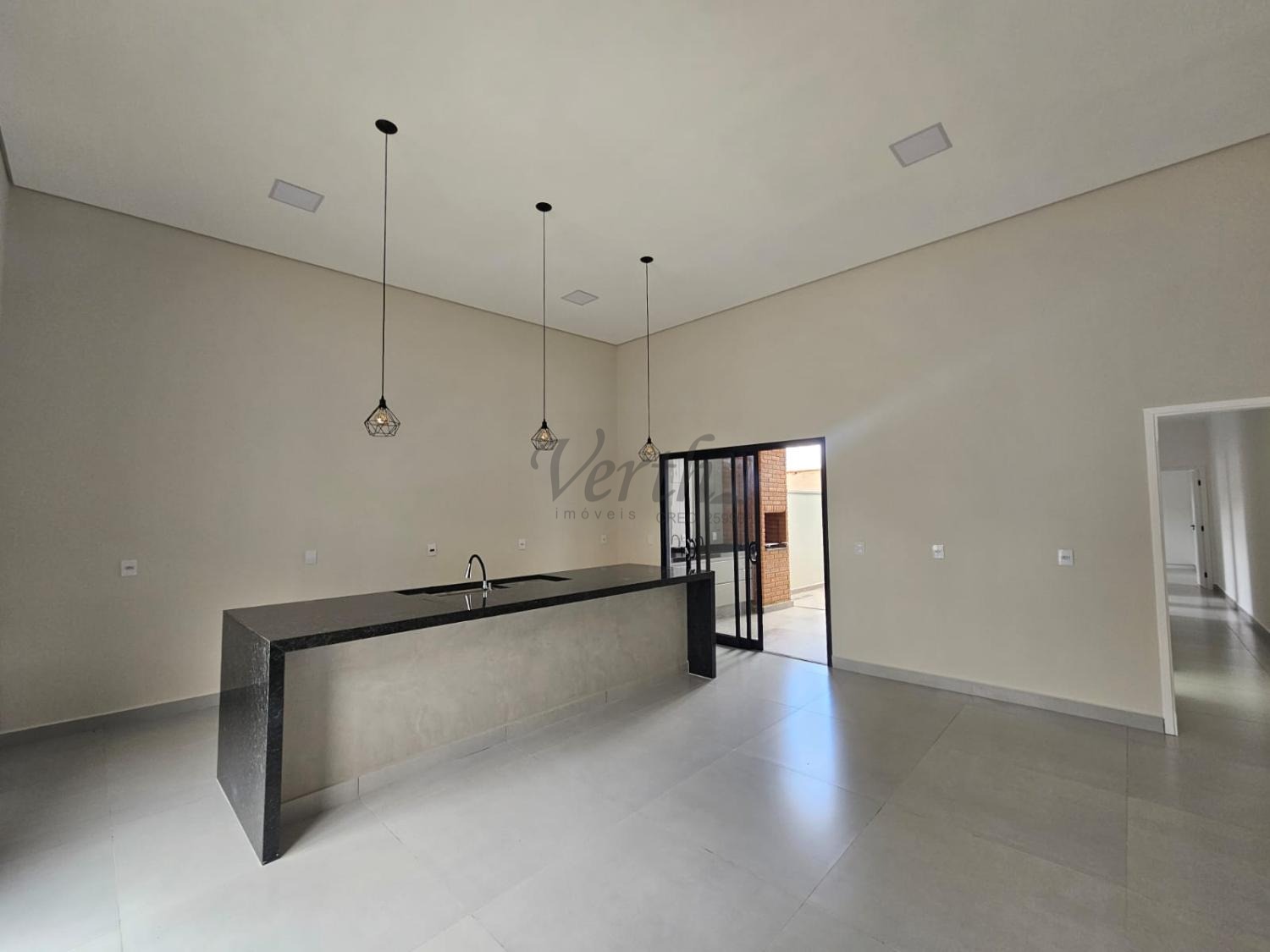 Sala e Cozinha Integrados com pé direito alto;