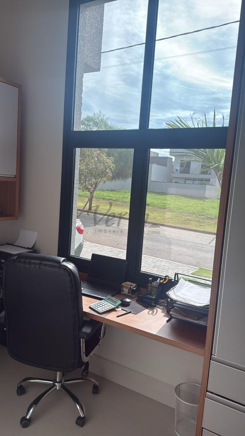 A área interna é complementada por um escritório, permitindo adaptação para trabalho ou uso multifuncional.