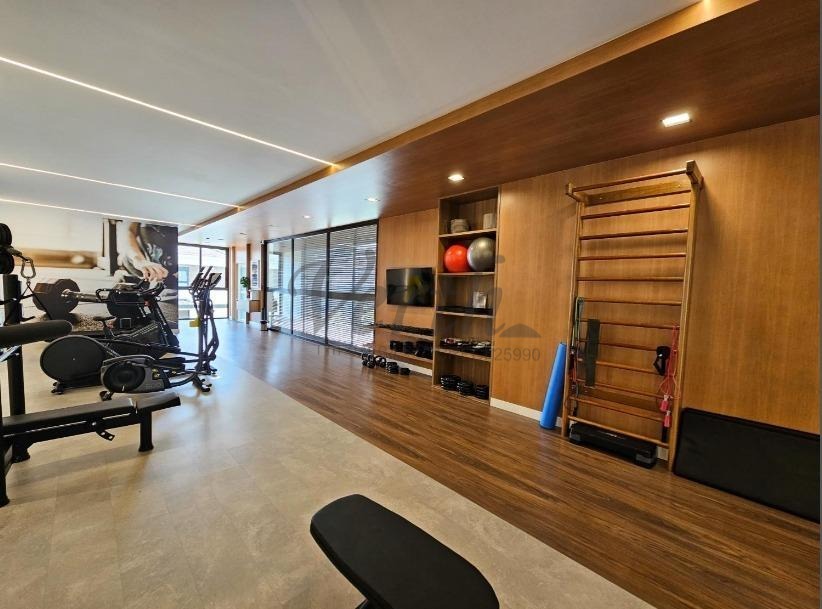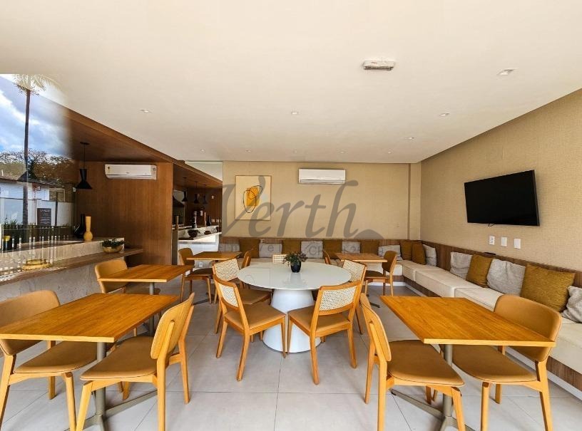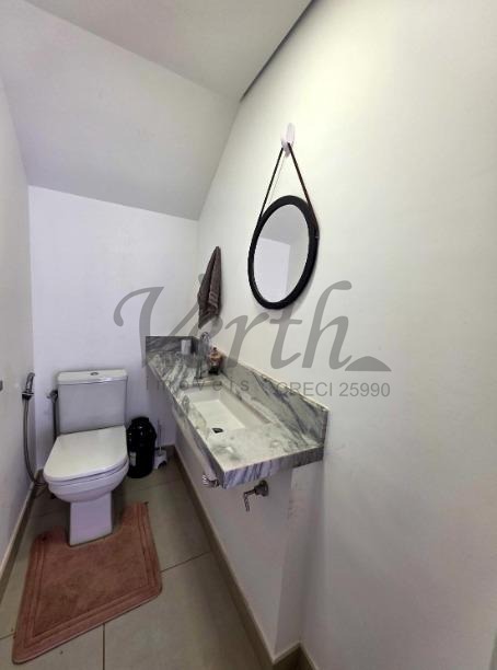 O sobrado conta com 3 suítes, todas com ar-condicionado, além de 5 banheiros. A área social é composta por sala para dois ambientes integrada à cozinha americana, criando um espaço funcional e agradável.