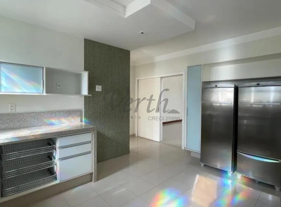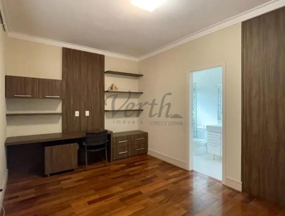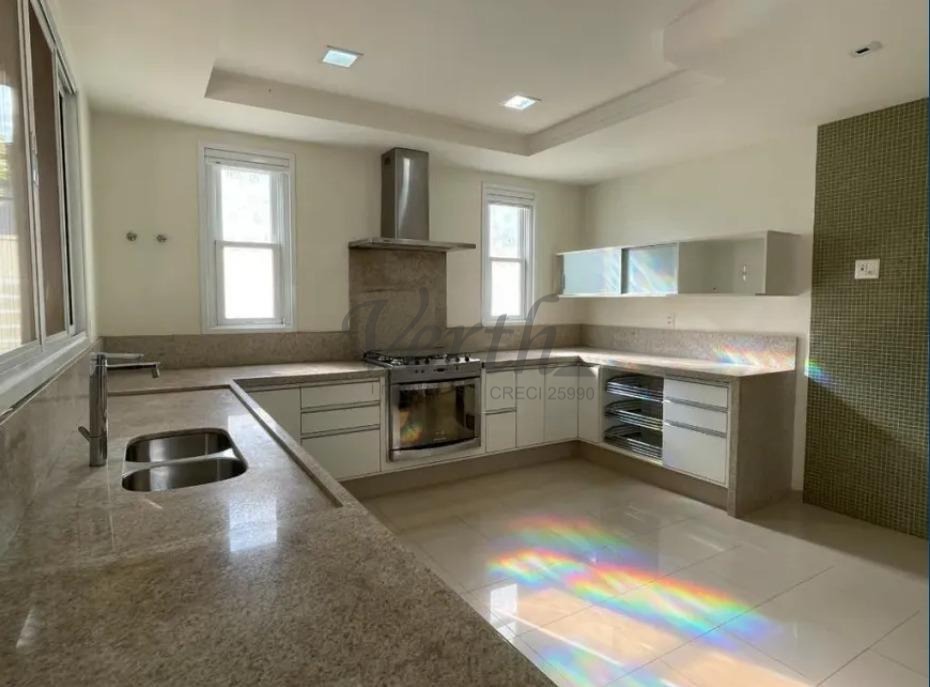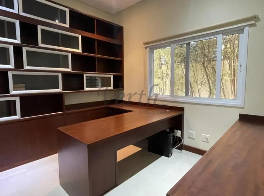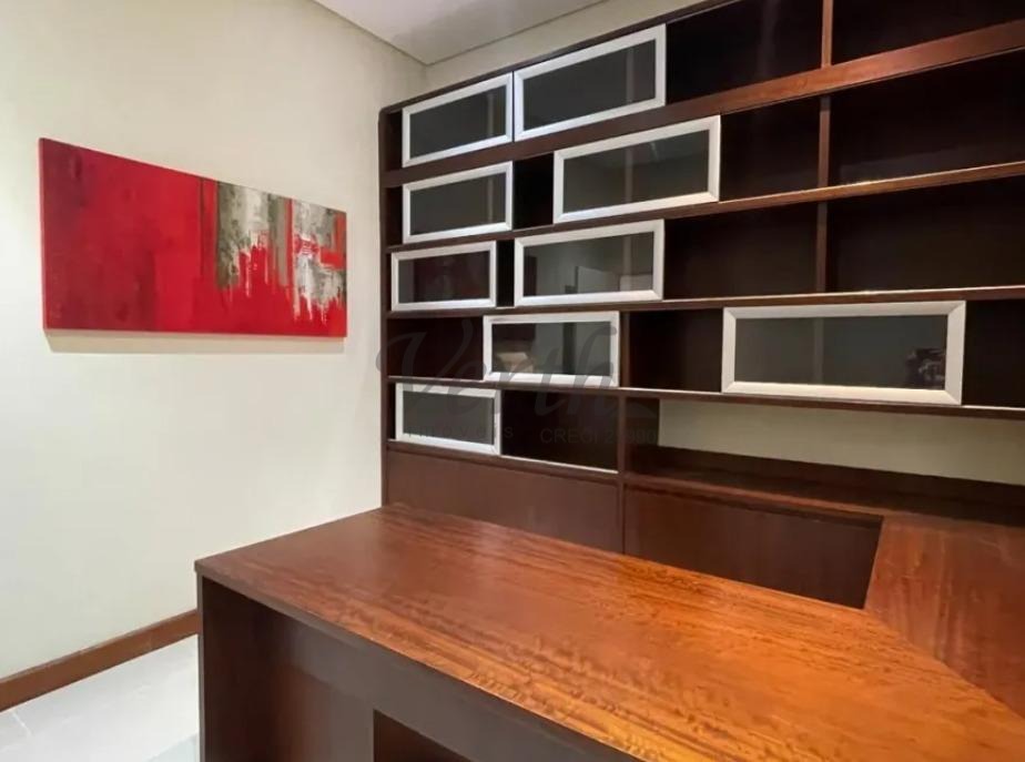 O imóvel dispõe de 4 suítes, garantindo privacidade, além de 6 banheiros no total. Conta ainda com escritório, cozinha com armários planejados, closet, depósito e área de serviço independente.